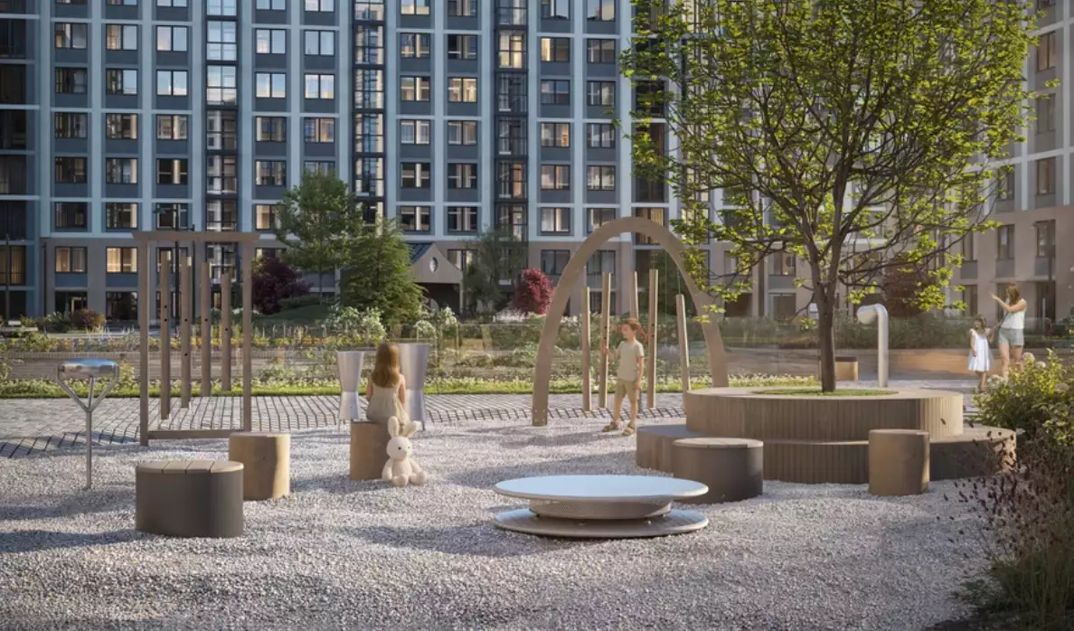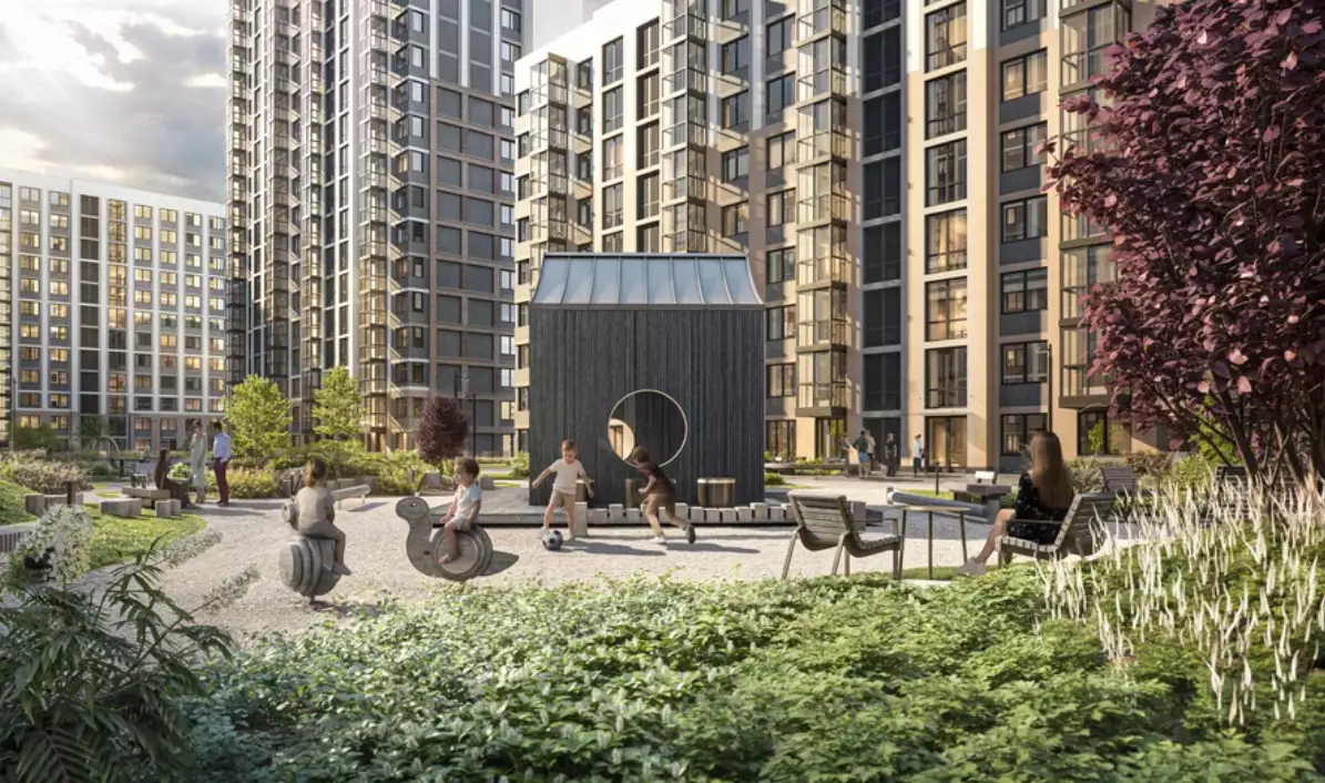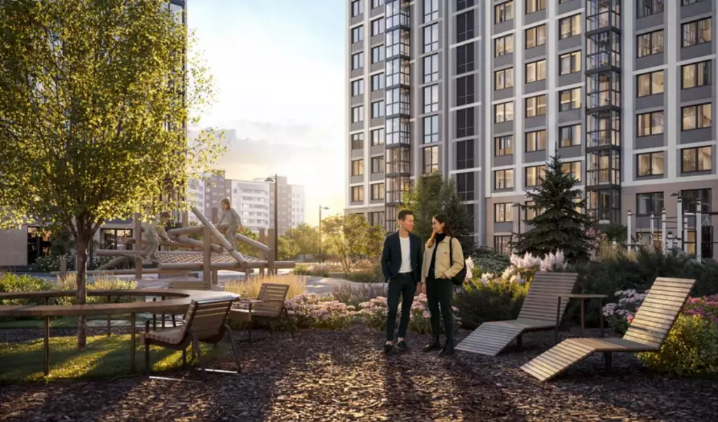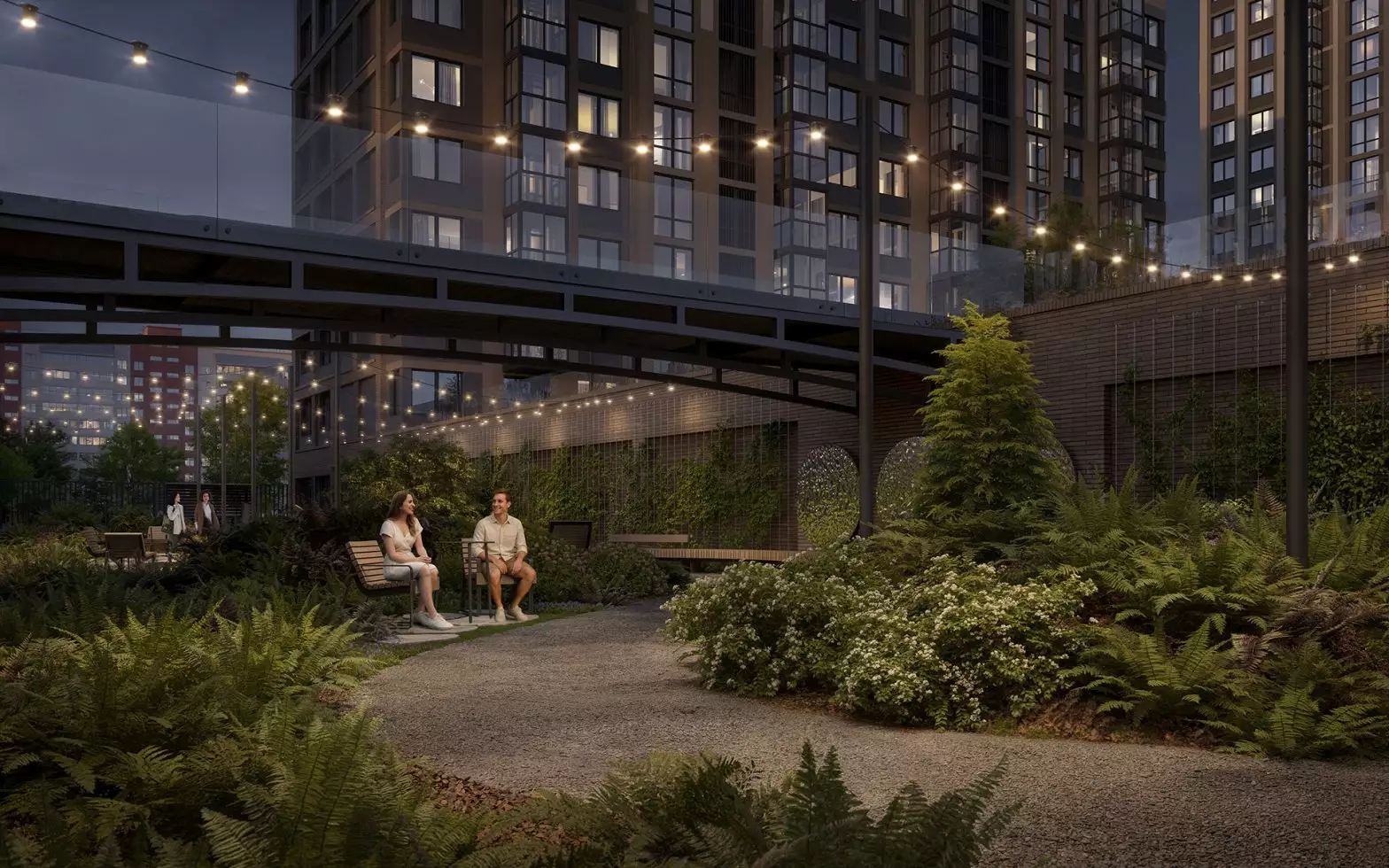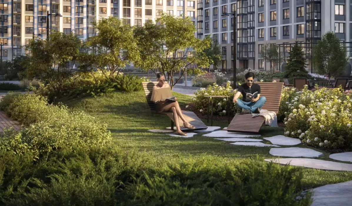 Дворы двух очередей соединит пешеходный мост. Под ним расположат зеленый бульвар-променад, который станет местом для прогулок и отдыха. Здесь можно будет полежать в гамаке, понежиться на солнце, полюбоваться зеркальными инсталляциями и устроить семейный пикник в бранч-зоне под навесом. По проекту дворовое пространство полностью освобождено от машин. Для безопасности предусмотрена круглосуточная охрана и система видеонаблюдения. Попасть во дворы смогут только жители по индивидуальному цифровому ключу. Помимо прочего, в состав встроенной инфраструктуры квартала войдут:
