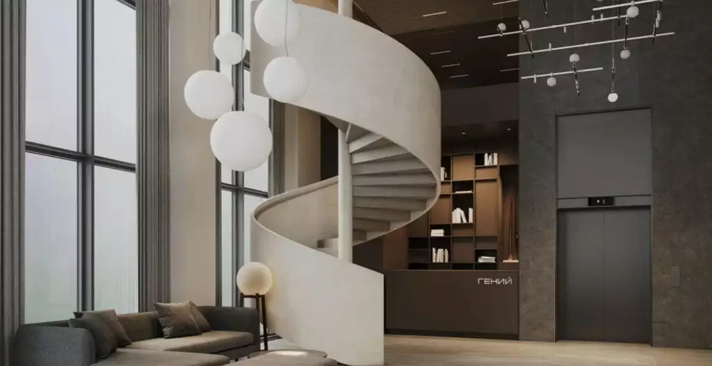 Архитектура жилого комплекса "Гений" лишена избыточных деталей. Фасады корпусов украсят авторские декоративные элементы и панорамное остекление. Они будут разделены на объемные блоки, и это придаст зданиям дополнительную выразительность. Контрастные коричневые и белые оттенки в отделке стен дополнят образ и создадут игру света и тени. Теплый коричневый оттенок символизирует прочную основу, а белый цвет — пространство для новых идей. В сочетании с натуральными материалами это создаст архитектурный образ, в котором соединяются красота и интеллект. Особое внимание уделено оконным порталам, которые станут отличительной чертой башен новостройки. Эти архитектурные элементы создадут эффект рамки для восприятия окружающего мира. Панорамные окна подчеркнут эту открытость и позволят видеть как город, так и собственные идеи в новом ракурсе.