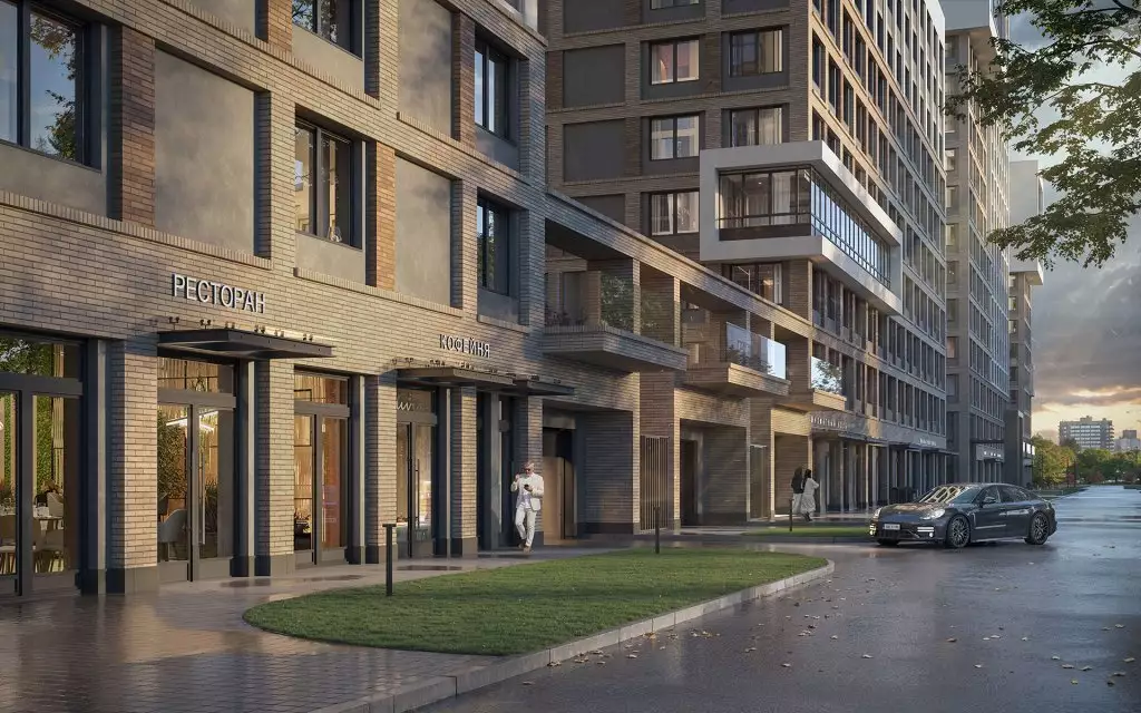 Доступ на территорию жилого комплекса организован через двухуровневые парадные, расположенные во втором и шестом корпусах. Архитектура входных групп построена на сочетании высоких потолков, больших окон и элегантного авторского интерьера, отсылающего к эстетике 60–70-х годов XX века и создающего ассоциации с футуристичными кабинетами изобретателей того времени. Здесь появится спиральная "ДНК-лестница" в стилистике советского брутализма, акцентные светильники в форме матриц и современные арт-объекты, среди которых — кинетические скульптуры Владислава Бек-Булатова. Внутри предусмотрены стойки ресепшен, переговорные и зоны для отдыха с кофепойнтом. Одну из парадных украсит зеркальная скульптура "Терменвокс", дополненная медитативной музыкой. В четвертом корпусе, возводимом в первой очереди, запланирован интеллектуальный клуб-гостиная с Wi-Fi, трансформируемая в коворкинг и удобная для встреч или работы. Здесь можно организовать книжный клуб, провести лекцию или устроить научное шоу для детей. Пространство также подойдет для празднования дней рождения и семейных встреч. В каждой парадной предусмотрены вместительные колясочные. Для размещения авто под стилобатом спроектирован подземный паркинг. Здесь выделено 601 машино-место, из которых 32 оборудованы зарядками для электромобилей. В подземной части также разместятся кладовые для хранения крупногабаритных вещей. Для гостей предусмотрена наземная парковка по периметру комплекса.