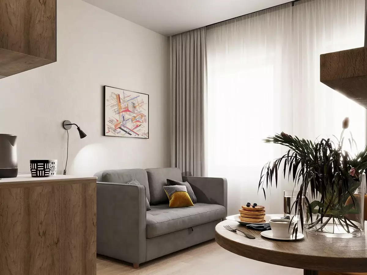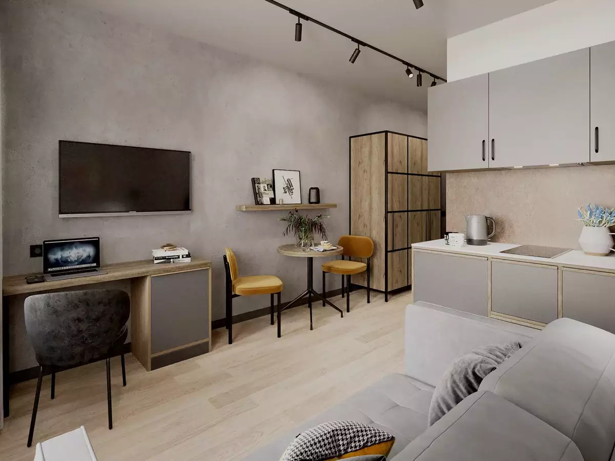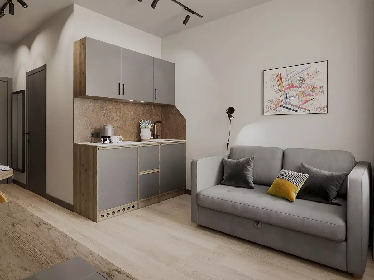Покупателям предлагаются варианты апартаментов площадью от 17 до 78 м² — от студий до двухкомнатных лотов. Доступны также нестандартные планировки евроформата и апартаменты с личной террасой. Пространство номеров организовано в трех зонах: прихожая, кухня-гостиная и жилая комната. Варианты отделки включают чистовую в индустриальном стиле с возможностью выбора меблировки и бытовой техники, соответствующей стандартам сети AVENIR, либо передачу без отделки.