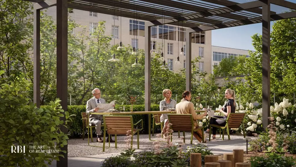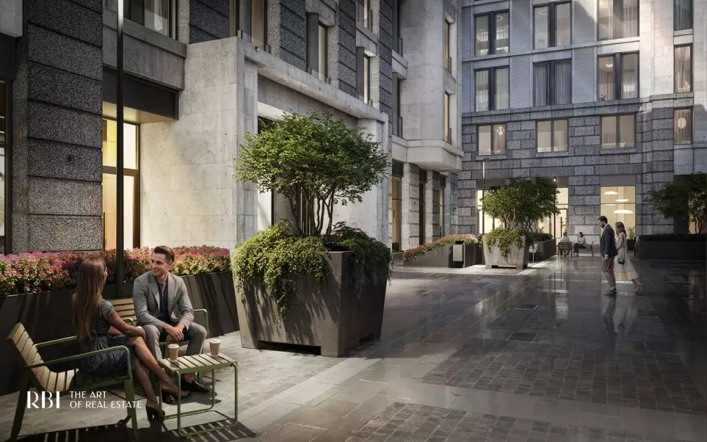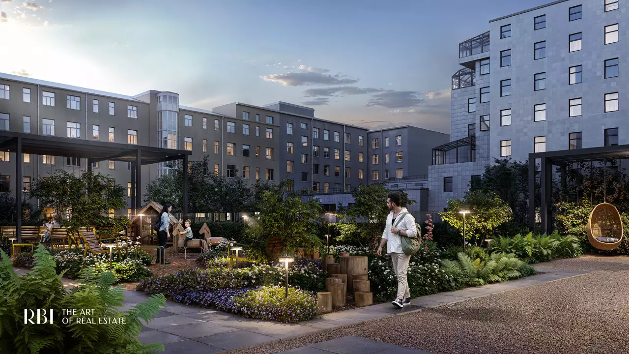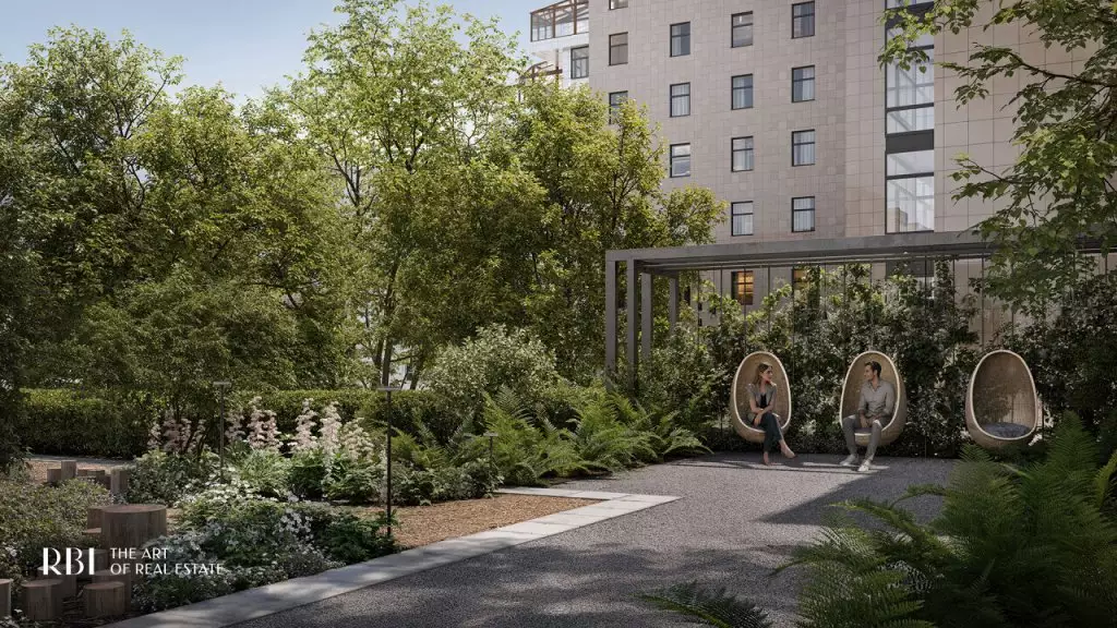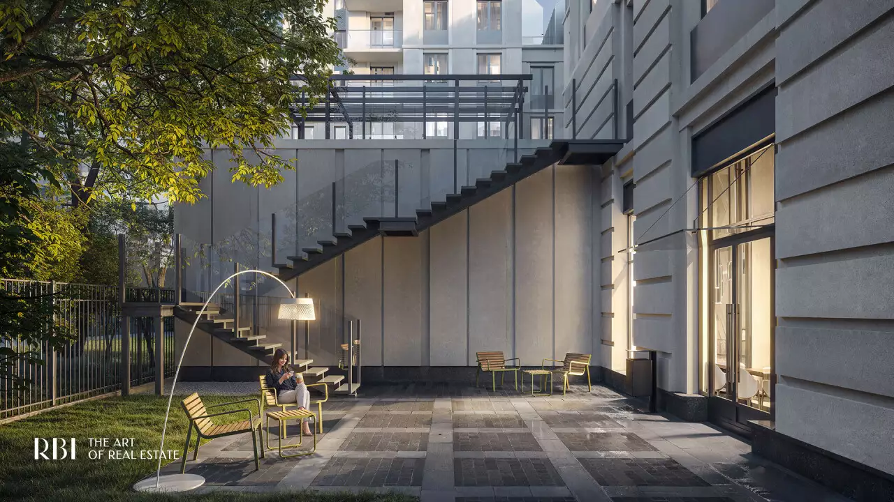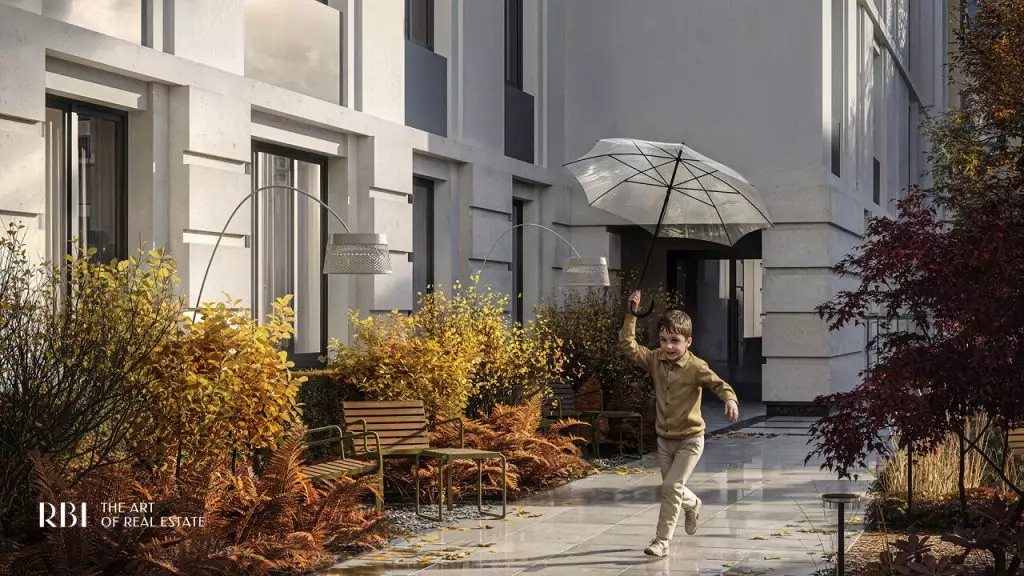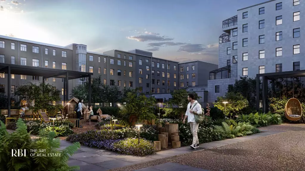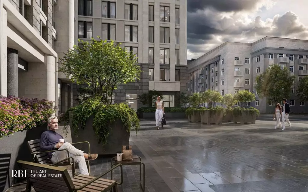 Перед главным входом в дом располагается приватный двор с ландшафтным дизайном, разработанным бюро AFA. Он полностью закрыт от автомобилей и посторонних, что создаёт здесь атмосферу уюта и безопасности. Во дворе появится двухуровневое испанское патио — сердце комплекса. Навесная конструкция позволит проводить время на свежем воздухе независимо от погоды, в том числе в дождливые дни. На верхнем уровне расположится детская площадка с мягким покрытием и игровыми комплексами Richter RUS, созданным по высоким стандартам безопасности. На нижнем уровне обустроен пейзажный сад с зонами для отдыха и тихой работы под открытым небом. Здесь создаётся особая атмосфера: клёны, горные сосны и гортензии формируют зеленое окружение для отдыха и вдохновения. Беседки под навесом станут арт-коворкингами, где можно сосредоточиться на идеях и проектах. Лаунж-зоны позволят отдохнуть в уединении или пообщаться в небольшой компании. Качели-гнёзда, скрытые за живой изгородью, приглашают к размышлениям и релаксу. Извилистые дорожки из природных материалов напоминают о парковых ансамблях пригородов Петербурга и несут отголосок изысканной атмосферы императорских резиденций. На всей территории доступен свободный Wi-Fi, что делает двор не только зоной отдыха, но и функциональным пространством для работы и общения. Вход во внутренний сад возможен только по электронному цифровому ключу. В патио предусмотрен прямой вход из лобби. Здесь расположен еще один кофепоинт, где можно приготовить кофе на вынос или собрать набор для пикника под открытым небом. Такое решение превращает внутренний двор в продолжение домашнего пространства — тихое, вдохновляющее и живое. На первом этаже "Коллекционера" откроются: