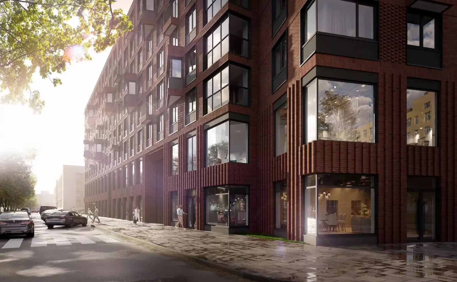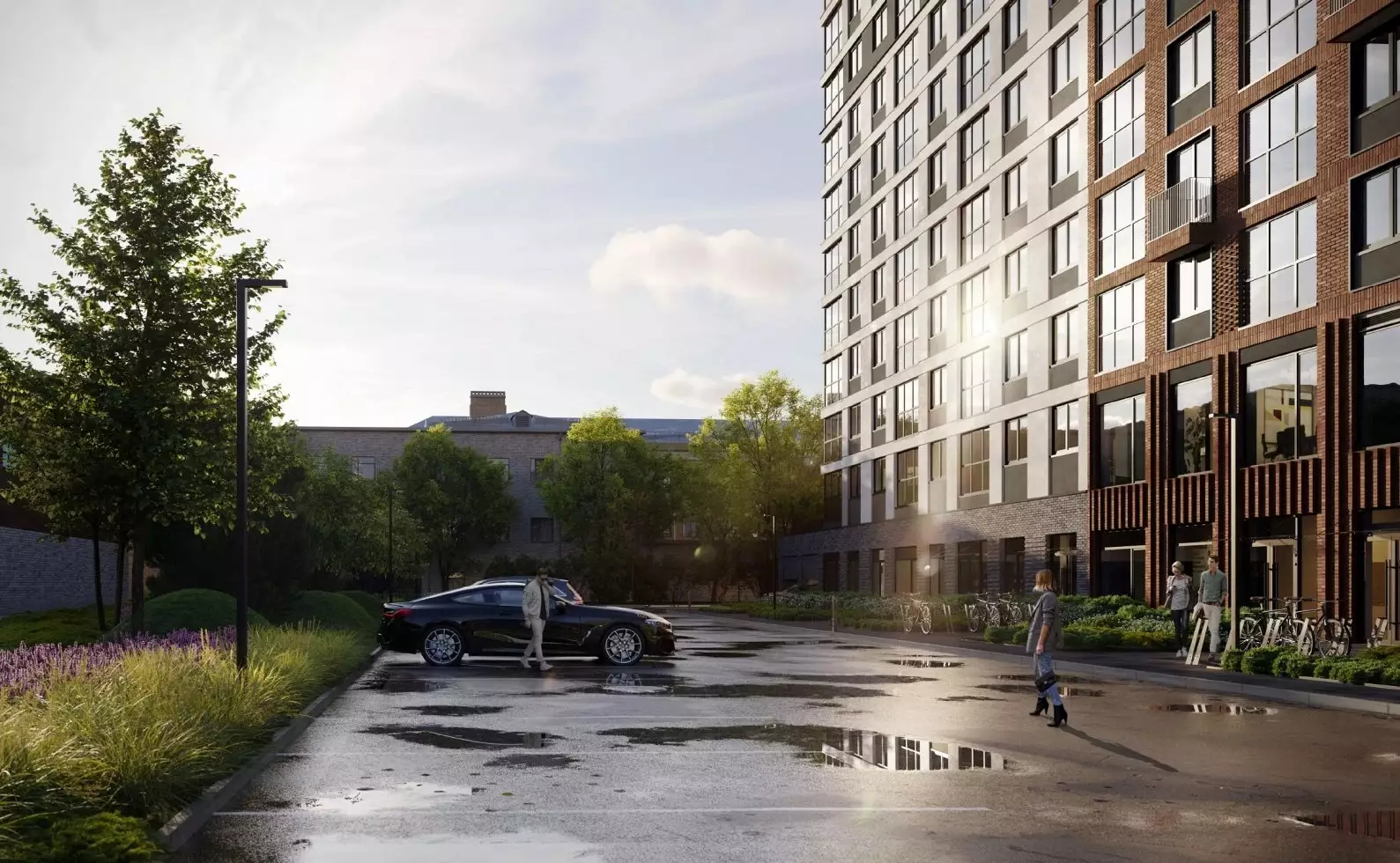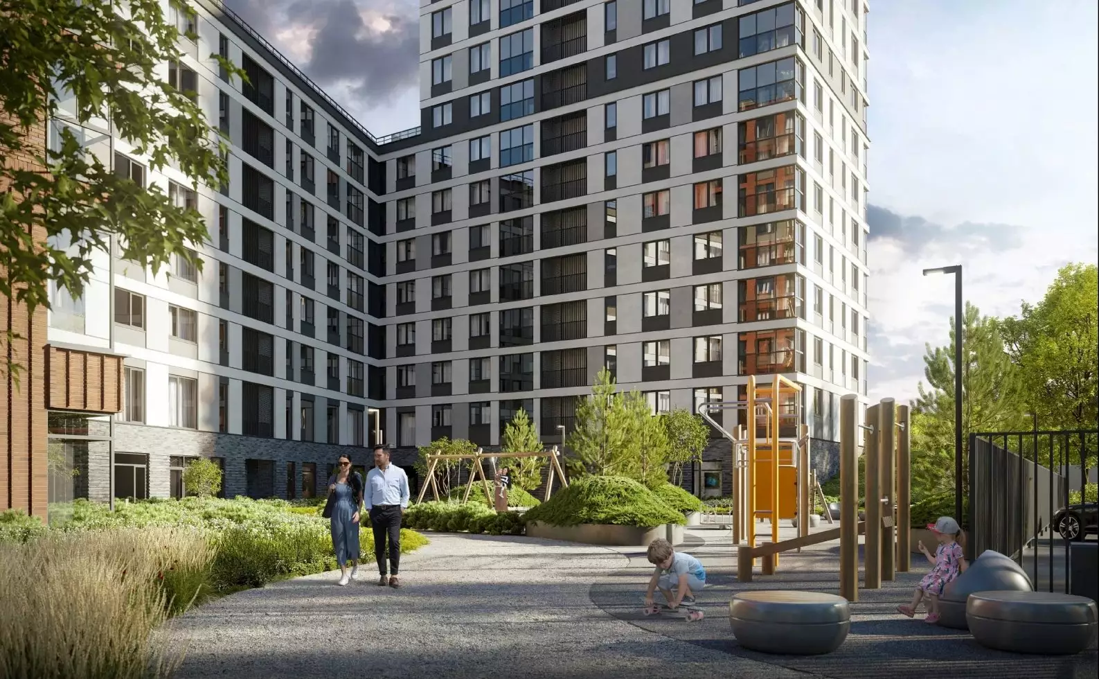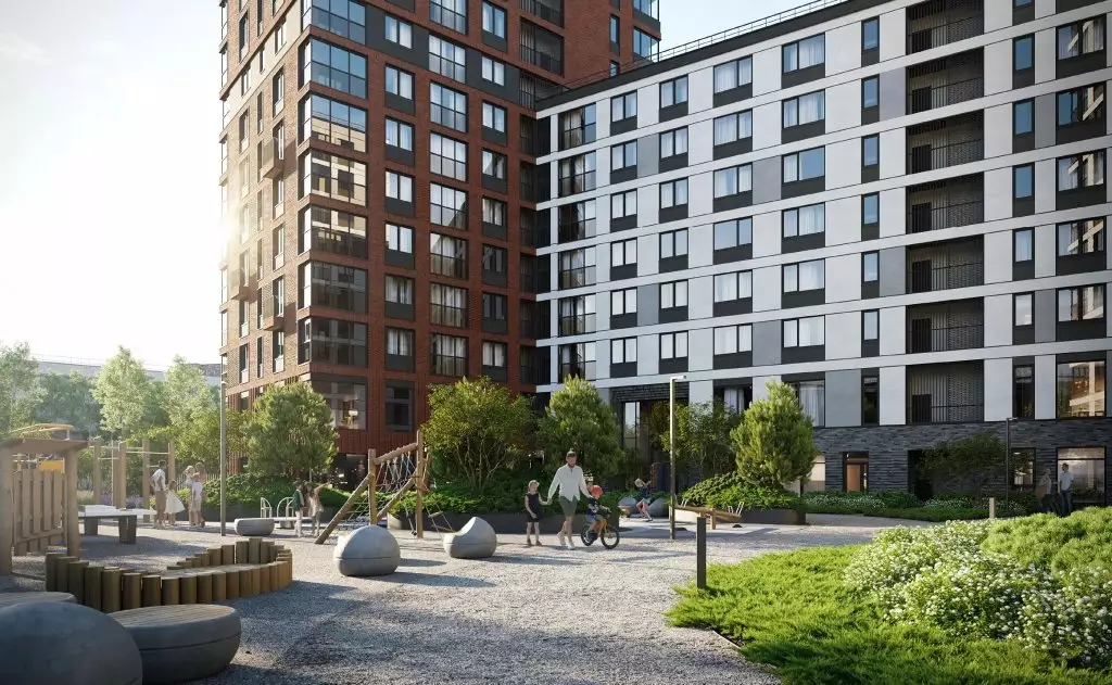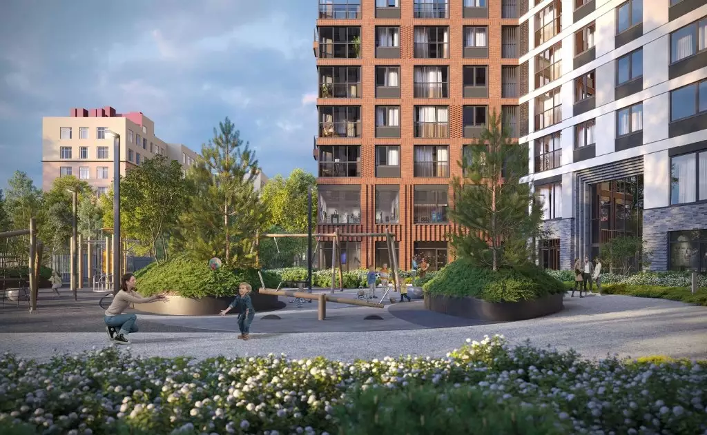 Охраняемый внутренний двор будет приватным, закрытым для проезда автомобилей и прохода посторонних. Проект благоустройства предусматривает озеленение с ландшафтным дизайном, прокладку извилистых прогулочных дорожек, создание зон отдыха в форме патио, детских и спортивных площадок. За дворовыми пределами выделены открытые гостевые автостоянки. На первом этаже откроются заведения стрит-ритейла и сервисы. В пешей доступности работают детсады, общеобразовательные школы, детские развивающие центры, поликлиники и частные медцентры, спорткомплекс, фитнес-клубы, спортивные секции, кафе и рестораны, продуктовые магазины и супермаркеты, торговые центры, банковские отделения.