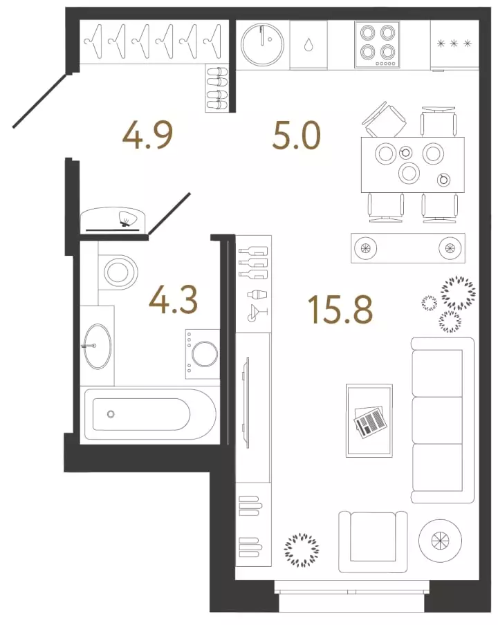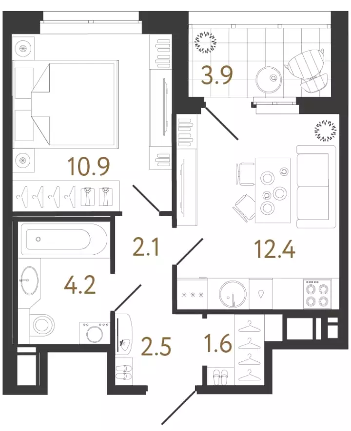 Покупателям жилья предлагаются варианты уникальных классических и европланировок площадью от 24 до 121 м² с потолками высотой 2,7 м на типовом этаже (3 м на трех верхних уровнях) с одной-четырьмя комнатами, включая студии. Можно выбрать лоты с террасами, эркерами, угловыми окнами, лоджиями, французскими балконами, кухнями-гостиными, мастер-спальнями и гардеробными. Застройщик передает квартиры с предчистовой отделкой white box.