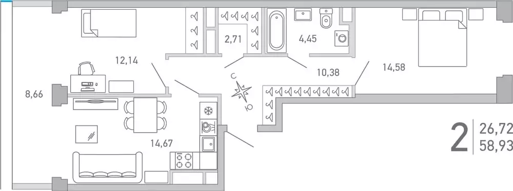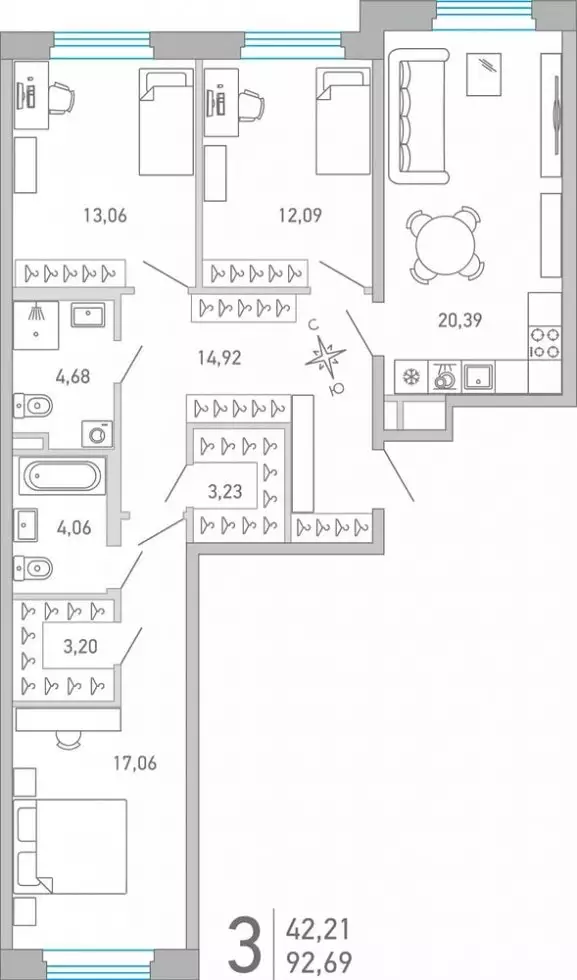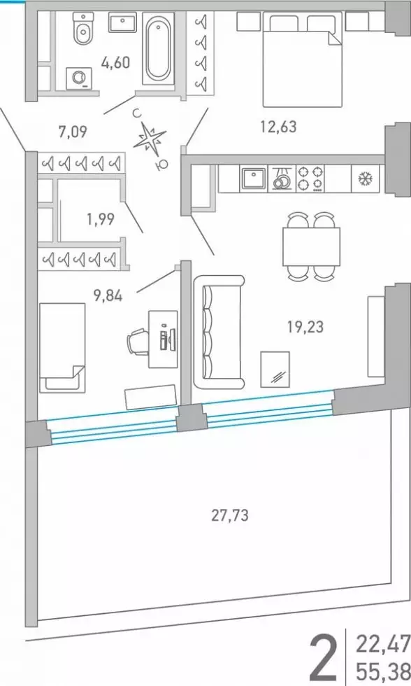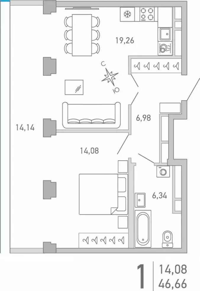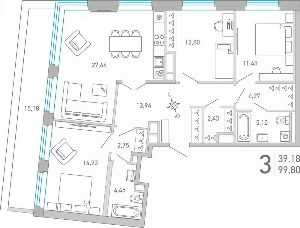 Покупателям предлагаются разнообразные варианты планировок площадью от 35 до 102 м² с потолками от 2,7 м на типовом этаже и с числом спален от одной до трех. На последнем этаже расположены эксклюзивные пентхаусы с потолками высотой 3,65 м и террасами. Также доступны лоты с отдельным входом и патио на первом этаже, угловым остеклением Grand View, мастер-спальней, окном в ванной комнате. Все квартиры оснащены гардеробными помещениями, а "двушки" и "трешки" имеют два санузла. Застройщик передает жилье без отделки, а также с предчистовой отделкой. Расположение на пересечении набережной Черной речки и набережной Невы обеспечивает большинству квартир великолепные виды. Окна будут выходить на Каменный остров и Петроградскую сторону, предлагая захватывающие виды на слияние рек, зеленые парки Каменного, Крестовского и Елагина островов, а также на Лопухинский и Ботанический сад. Вдали виднеется шпиль телебашни и, при ясной погоде, Финский залив.