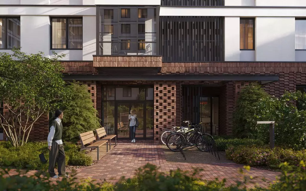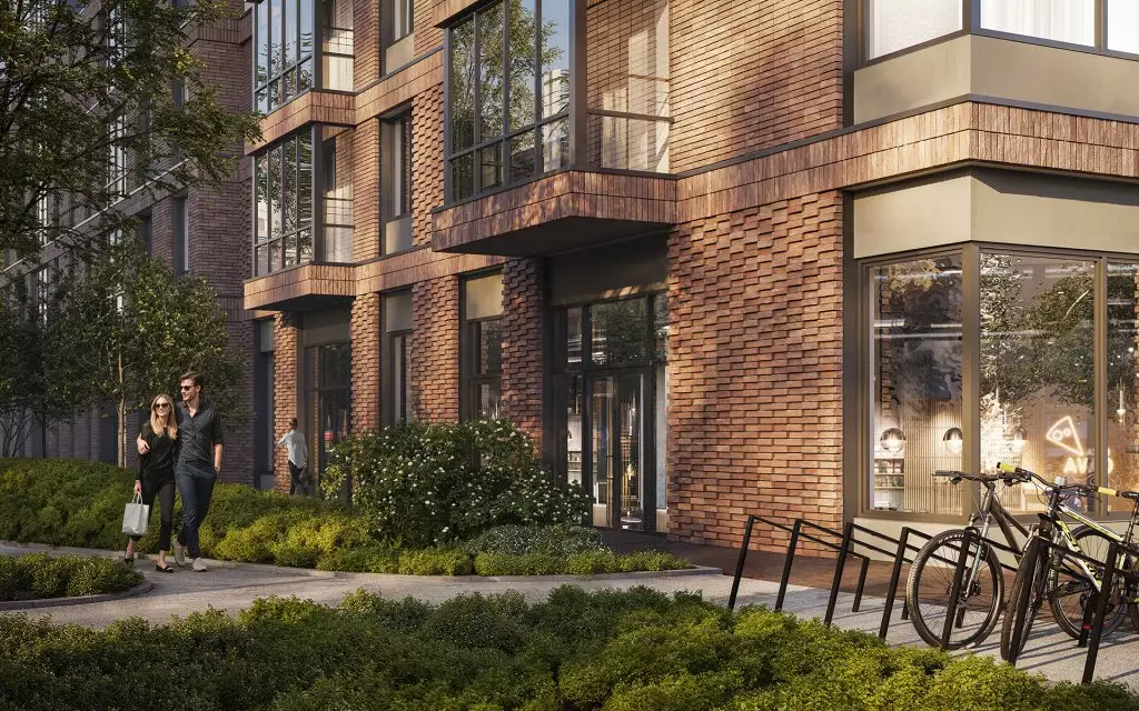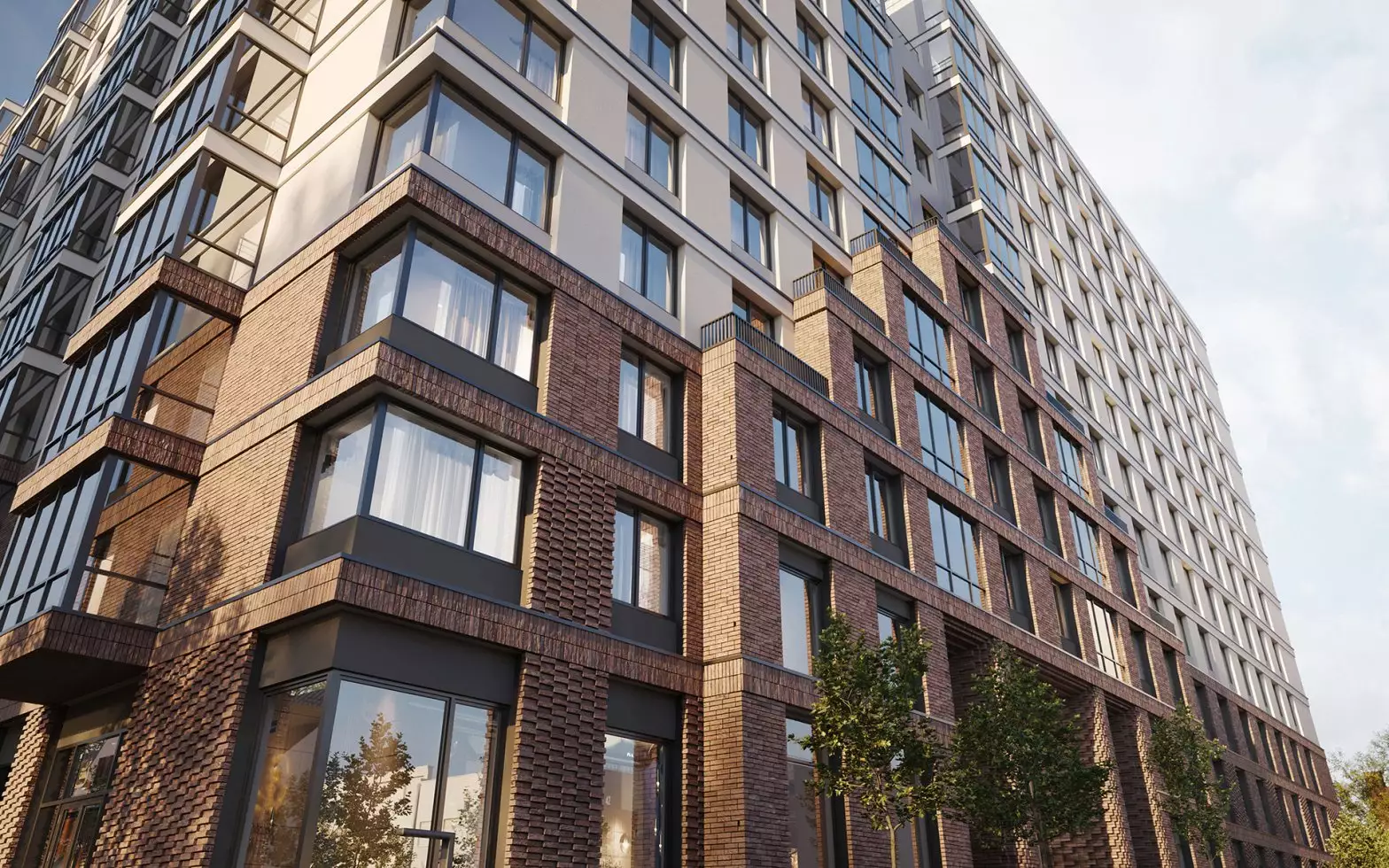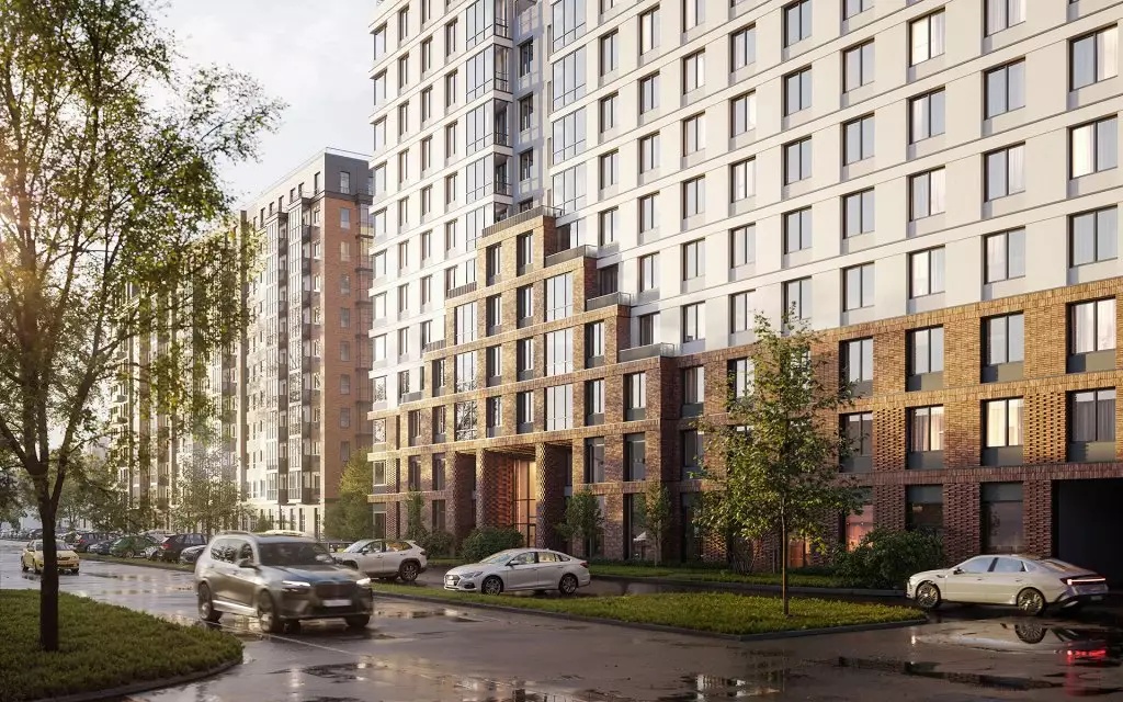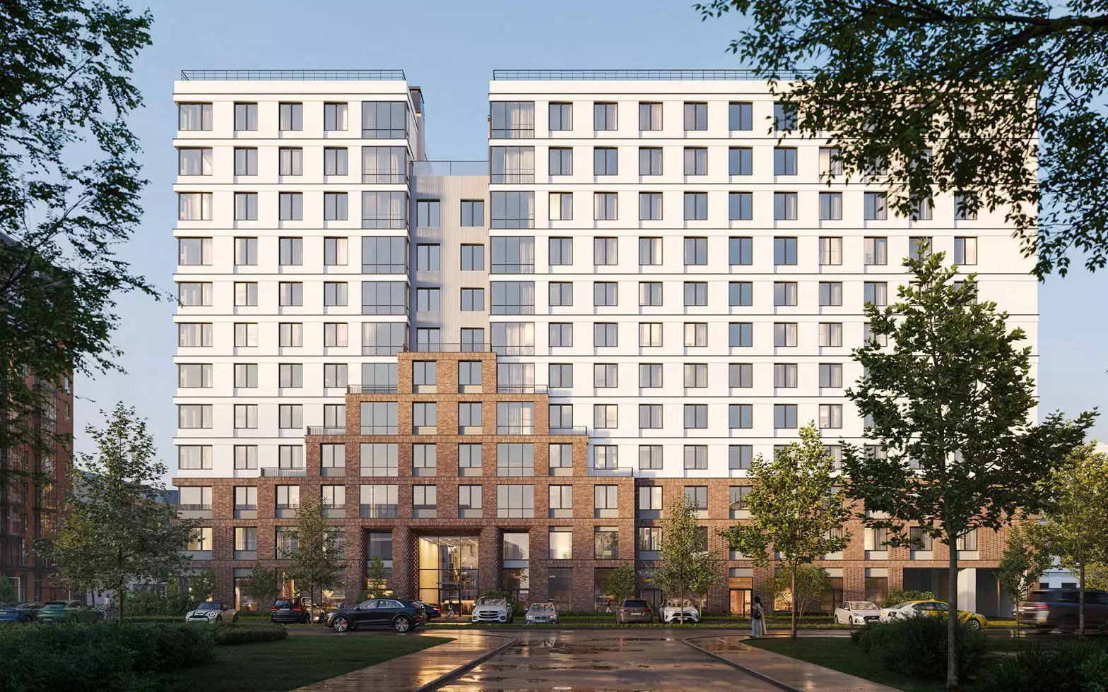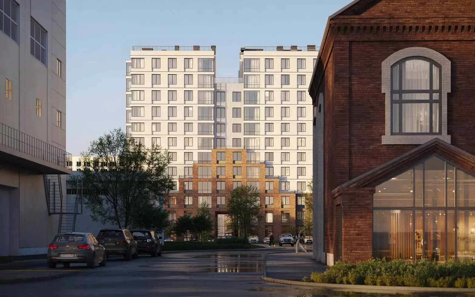Как известно, в XIX веке художники-передвижники изменили представление об искусстве, отказавшись от академической замкнутости, которой они предпочли движение и реальную жизнь. Этой философией вдохновлена концепция дома "Передвижники", создаваемого для тех, кто воспринимает мир схожим образом. Проект разработало известное питерское бюро "А.Лен", "подписавшее" здание кирпичной 3D-кладкой фасадов и выразительными входными порталами, задающими динамичный ритм, — своего рода визитными карточками этой мастерской. Фасадная композиция, решённая в сдержанной цветовой палитре, включает акцентные декоративные элементы, визуально перекликающиеся с обликом исторического пакгауза Варшавского вокзала — памятника архитектуры, расположенного по соседству. Эти детали формируют на фасаде образ складского здания товарной станции, сохраняя таким образом память места. Сочетание тёплого кирпича и светлой штукатурки в экстерьере усиливает идею движения и перехода. В архитектурном решении отсутствует демонстративная монументальность: объёмная кладка, чередование оконных ритмов и вертикальные линии формируют пластичный, живой силуэт здания. Архитектурный язык дома ненавязчиво отсылает к индустриальному прошлому района, но прочитан через актуальную эстетику и современные стандарты.