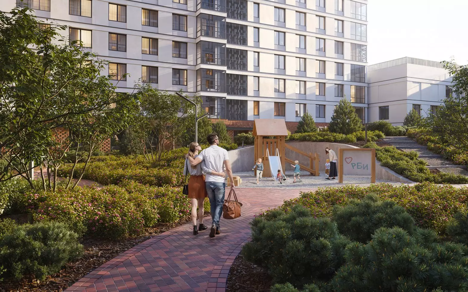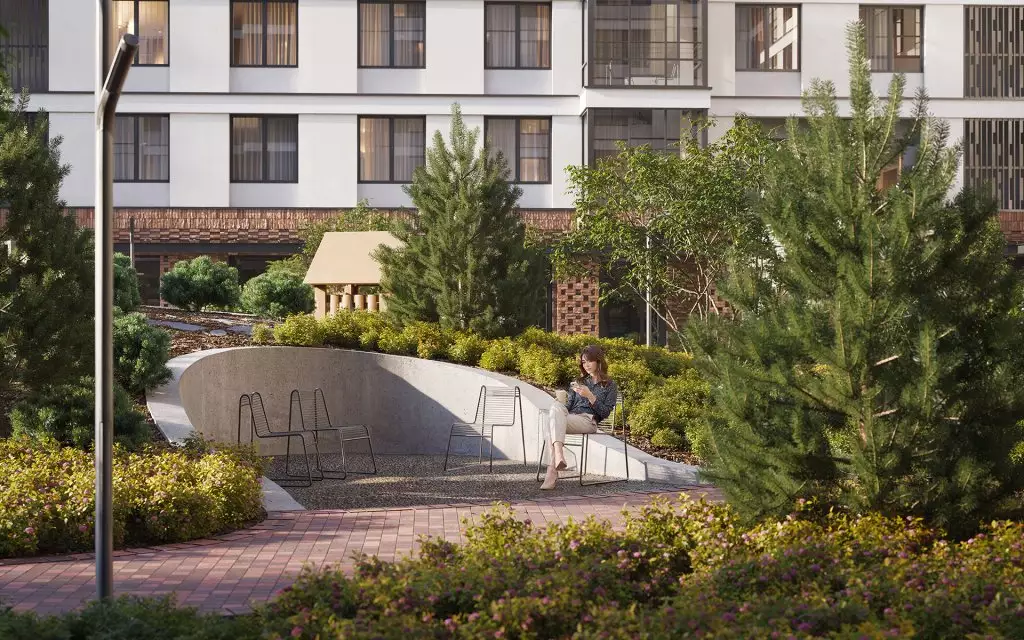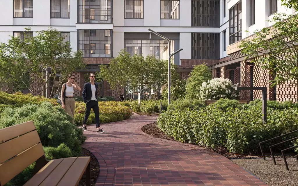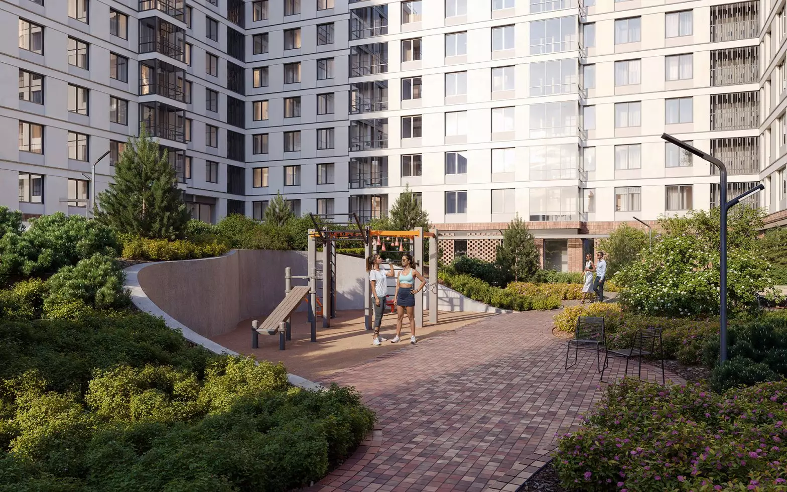 Закрытый двор без машин будет находиться под круглосуточной охраной и доступен только по индивидуальному ключу. П-образная форма здания естественным образом формирует внутренний камерный двор с единой зоной отдыха для резидентов комплекса. Такая конфигурация полностью защищает пространство от городского шума и суеты. Ландшафтная концепция дворового пространства построена как "метафора пути". Наземное покрытие поддерживает идею движения: диагональный рисунок кирпичной плитки направляет взгляд вперед и формирует интуитивный маршрут. Встроенные в мощение светильники, похожие на огни перрона, указывают дорогу домой. Территория будет утопать в зелени: живая изгородь и деревья сформируют атмосферу защищённости и камерности. Детские площадки от Richter RUS в "Передвижниках" также отсылают к историческому контексту: арочные домики напоминают вокзальную архитектуру и предлагают отправиться в воображаемое путешествие. Качели, горка, песочница и холм-лазалка позволяют детям познавать мир через движение и смелость. Подростки и взрослые смогут заниматься воркаутом на многофункциональной раме от FOREMAN. В состав собственной инфраструктуры квартала войдут: