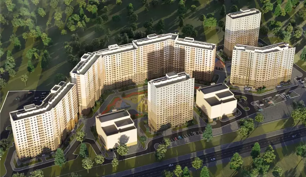 Придомовую территорию ждет благоустройство и озеленение в едином стиле с применением ландшафтного дизайна и функционального зонирования. Во дворе появятся площадки для детских игр, занятий спортом и отдыха. Для стоянки автомобилей построят два отдельно стоящих паркинга, а также выделят дополнительные гостевые парковки за дворовыми пределами. Инфраструктура поселка пока развивается. В пешей доступности от дома работают: