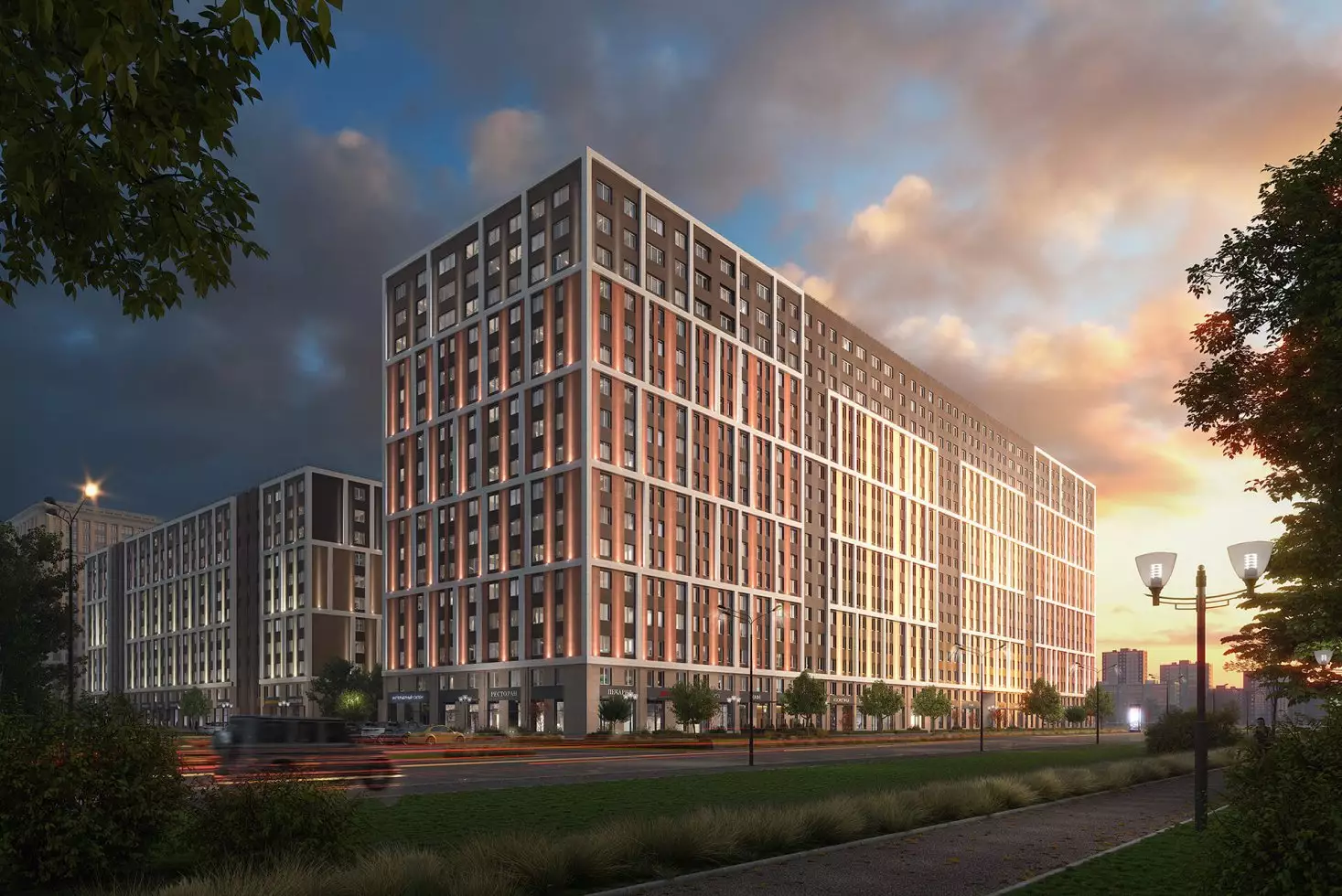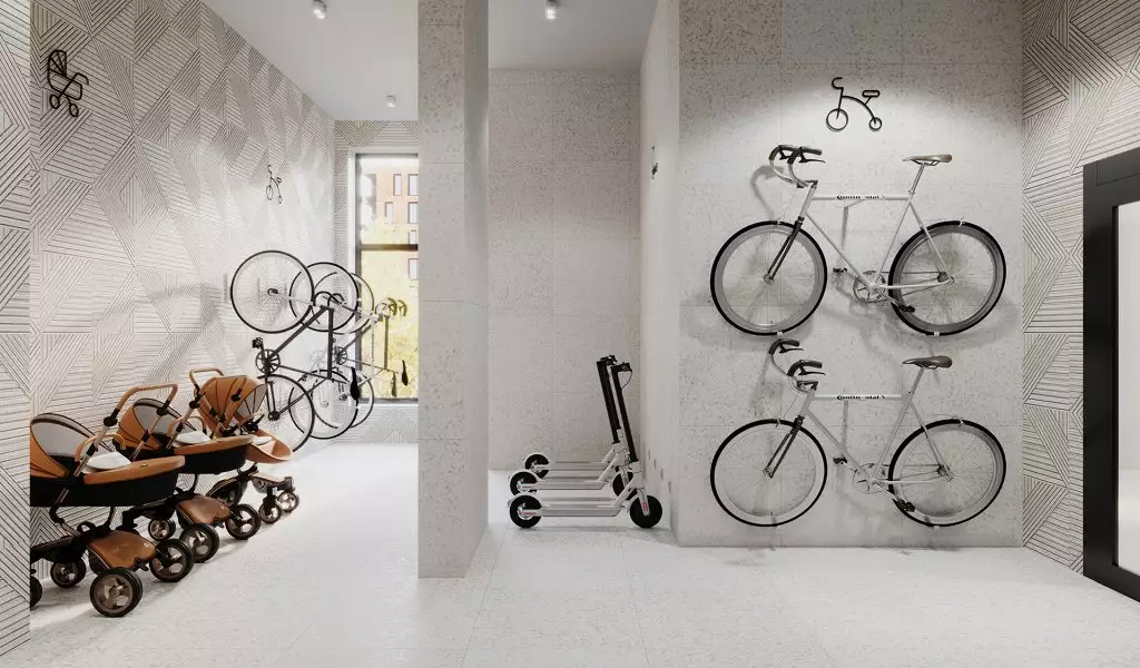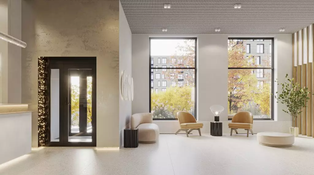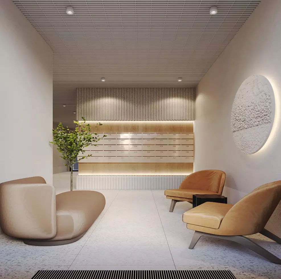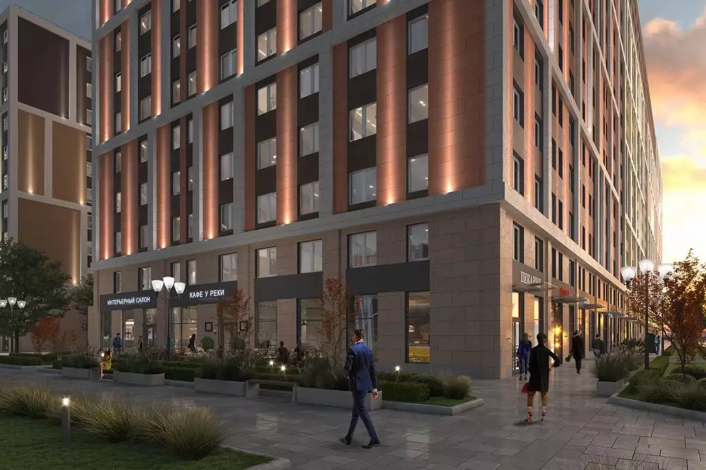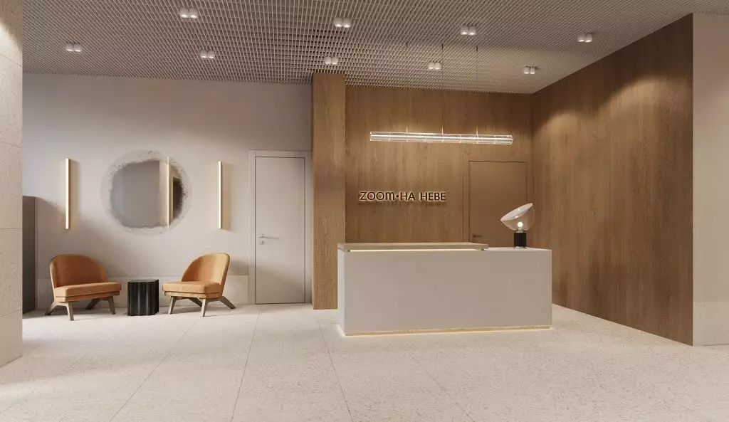Для апарт-отеля Zoom на Неве разработан индивидуальный проект в стиле современной европейской архитектуры: лаконичной и сдержанной. Минималистичные стильные фасады лишены декора. Эффектность внешнего облика достигается с помощью оригинальной цветовой отделки секций новостройки. В темное время суток предусмотрена декоративная подсветка экстерьера. Дизайн интерьеров входных групп и холлов также выполнен в стиле минимализма, в светлых спокойных тонах. В лобби с трехметровыми потолками и панорамным остеклением окон спроектированы ресепшен-зона круглосуточной консьерж-службы; пункт охраны; место для встреч с гостями и соседями с мягкой мебелью, вендинговыми аппаратами и постаматами; зона для бесконтактной доставки посылок и еды; детская игровая комната; помещения для хранения велосипедов и колясок с точками для зарядки электросамокатов; лапомойки для домашних питомцев. Часть площадей первых этажей отдана под коммерческие заведения. На подземном уровне разместится отапливаемый паркинг, рассчитанный на 432 машино-места.