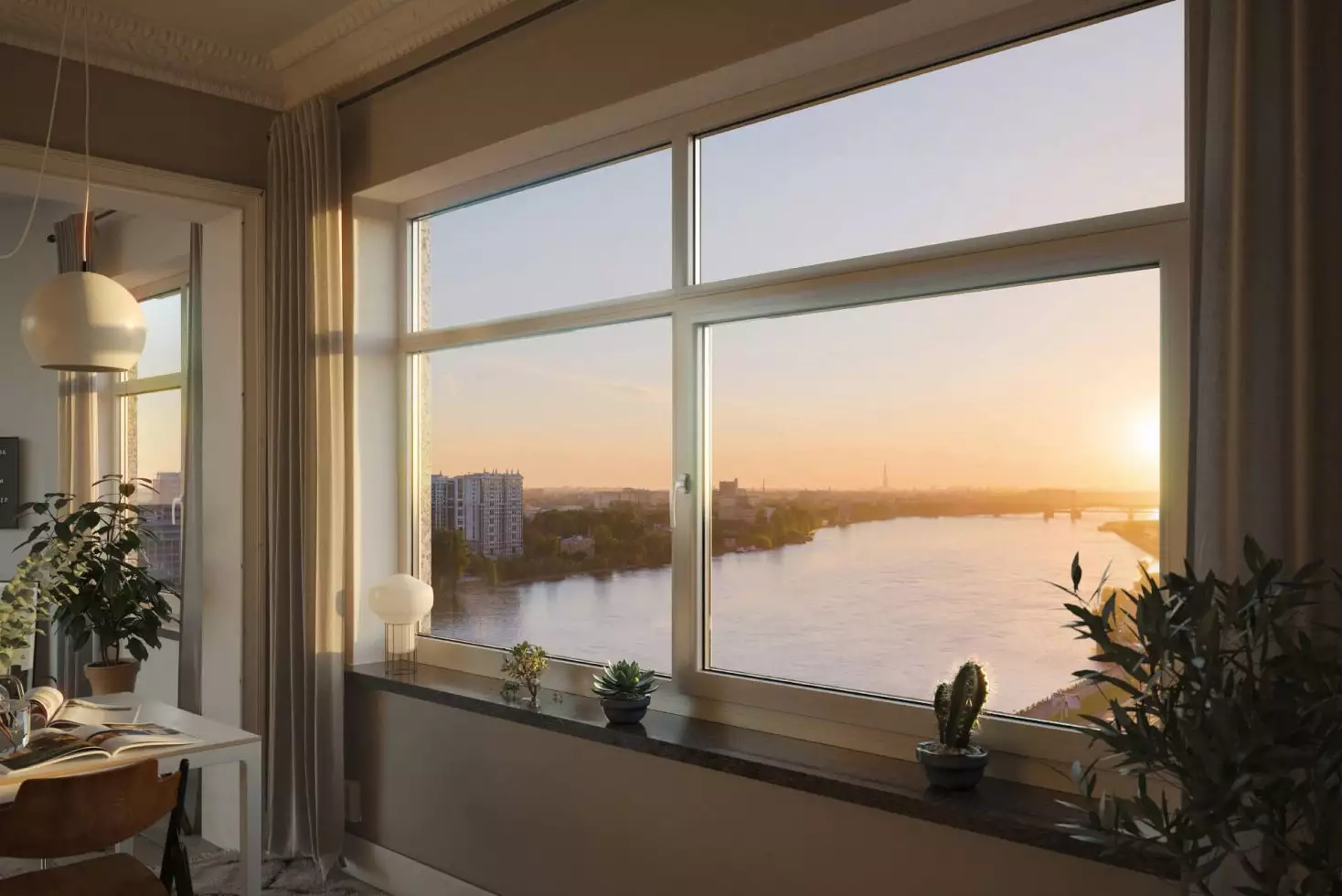 Покупателям недвижимости предлагаются различные варианты классических и европланировок площадью от 21 до 95 м², с потолками высотой от 2,7 до 3 м и количеством комнат от одной до трех (в том числе студии). Застройщик передает лоты как с предчистовой, так и с чистовой отделкой. Из окон многих апартаментов откроются прекрасные виды на Неву.