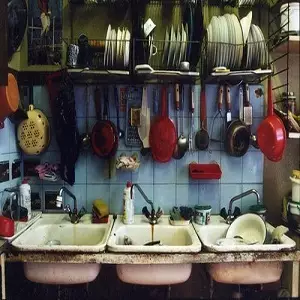 Условия жизни близки к катастрофическим. Очередь в ванную в коридоре длинной в 94 метра выстраивается с 5 утра. Бытовая комната на всю квартиру одна, а уровень супа в кастрюлях, говорят, замеряют фломастером. От воров. В квартиру частенько захаживают бомжи. Несколько раз случался пожар. Желающих расселить эту квартиру пока не находилось.