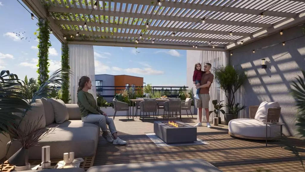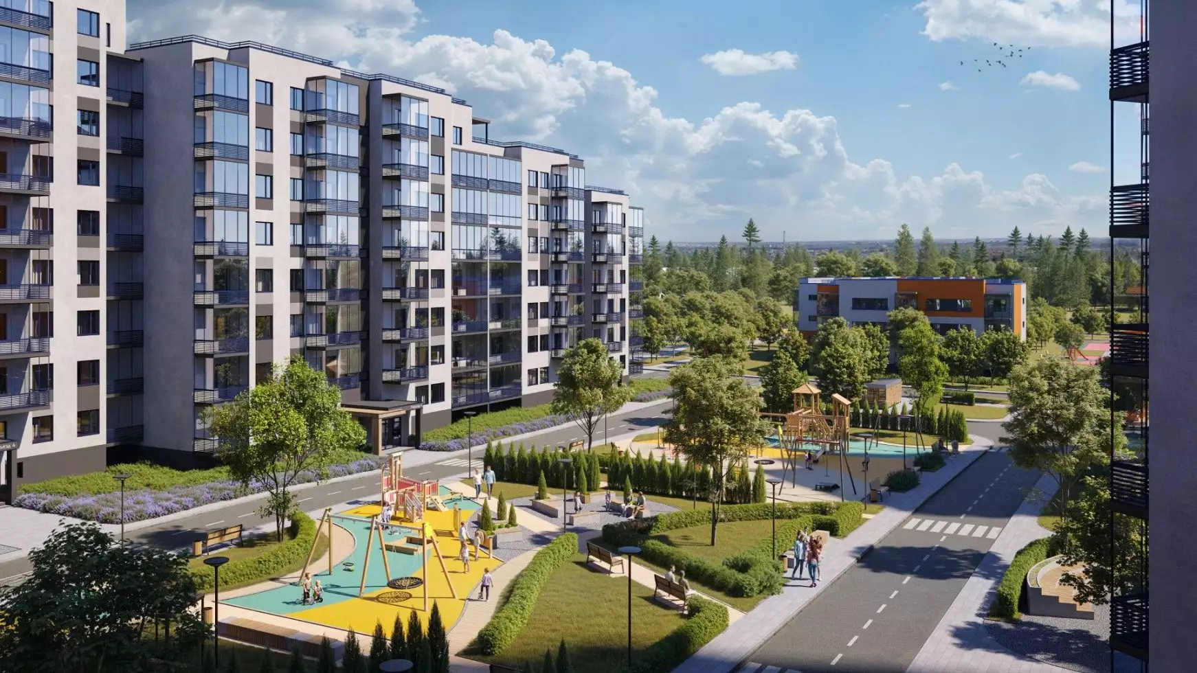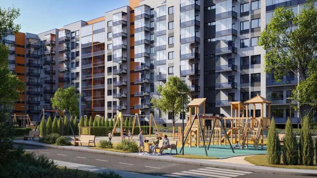 Пространство двора спроектировано с учетом комфорта жителей. Озеленение занимает значительную часть территории. На ней оборудуют беговые и велосипедные дорожки, игровые зоны с мягким покрытием, газоны и цветочные клумбы. Ландшафтный дизайн разделяет территорию на тематические участки. Пешеходная аллея станет центром общественной жизни. Газоны, кустарники и хвойные деревья создают уютную атмосферу и естественные границы между зонами отдыха, детскими и спортивными площадками. Для домашних животных предусмотрены специальные зоны для выгула. "Двор без машин" закрыт от шумных дорог и огорожен по периметру. В состав встроенной инфраструктуры квартала войдут: