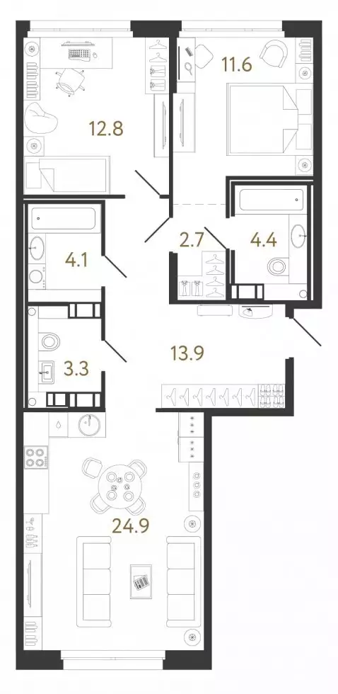 Покупателям жилья предлагаются классические и европланировки с числом комнат от одной до трех, включая студии. Площади квартир варьируются от 22 до 96 м², высота потолков на типовом этаже составляет 2,7 м, на втором этаже — 3,03 м. Часть лотов имеет обычные и французские балконы с остеклением. Все жилье застройщик передает с предчистовой отделкой.