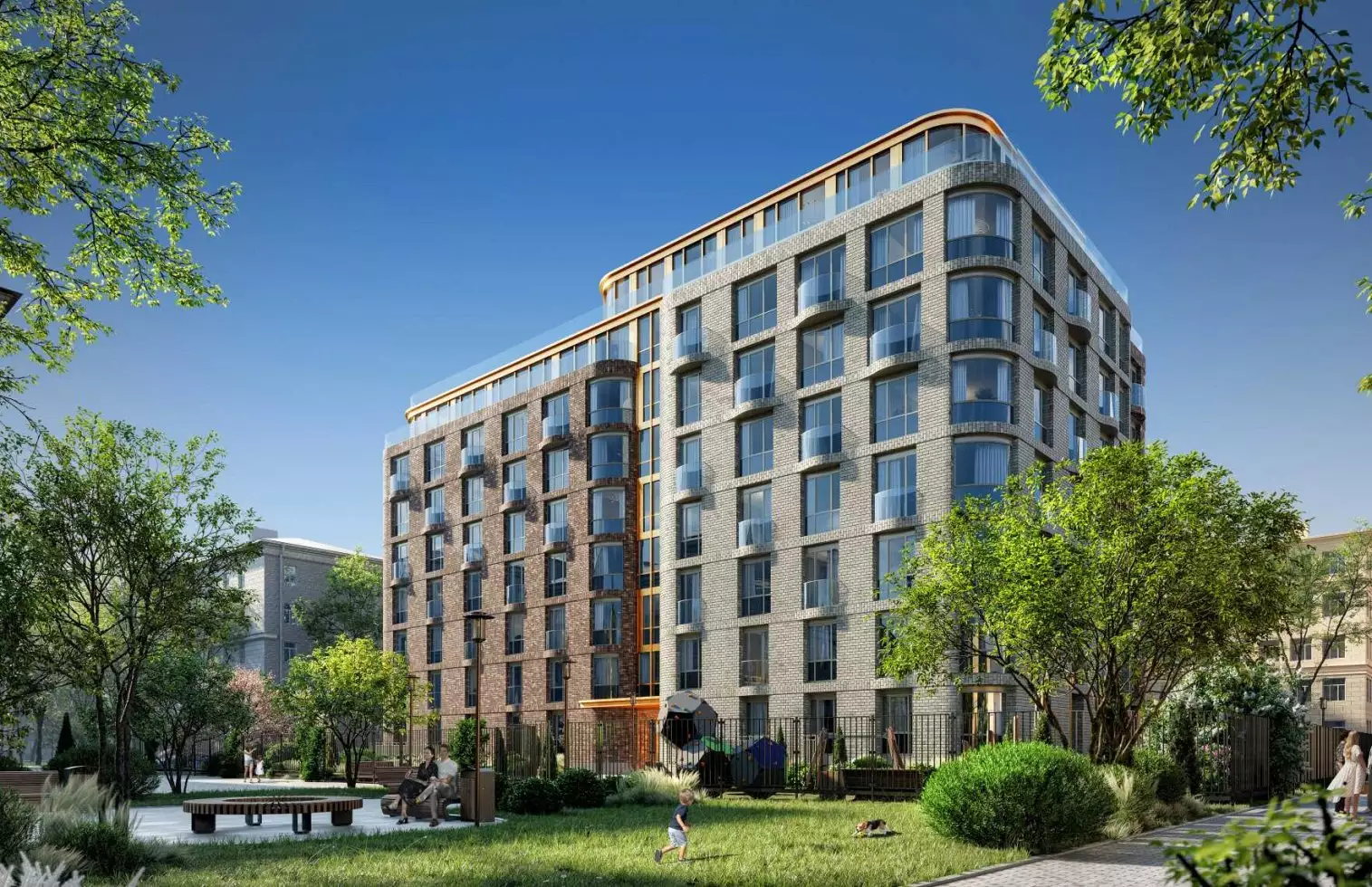 Территория новостройки будет закрытой и охраняемой, обеспечивая высокий уровень приватности и безопасности для жителей. Проект включает тщательно продуманное озеленение и благоустройство. В пределах двора разместятся детская площадка и уютные зоны для отдыха, включая небольшой зеленый сквер. Гостевая парковка не предусмотрена. В пешей доступности работает множество социальных, торговых и досуговых объектов: