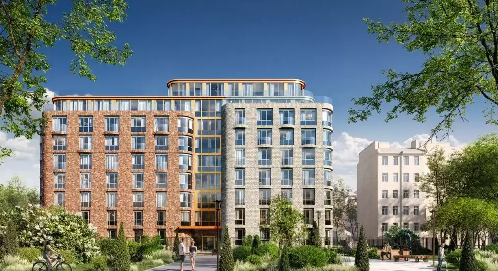 Здание возводится с применением монолитно-кирпичной технологии и оснащено панорамными окнами. В оформлении фасадов используются природные материалы, такие как клинкерный кирпич, стекло и металл. Проект предусматривает установку современных инженерных систем, обеспечивающих высокий уровень комфорта. Безопасность жителей поддерживается за счет круглосуточного видеонаблюдения и систем контроля доступа. Для удобства предусмотрены скоростные лифты с бесшумным ходом, которые обеспечат доступ на все этажи, включая паркинг.