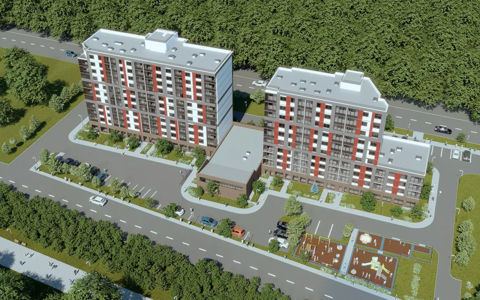 На придомовой территории застройщик выполнит благоустройство и ландшафтное озеленение, оборудует площадки для детских игр, занятий спортом, места для спокойного отдыха. В состав встроенной инфраструктуры новостройки войдут: