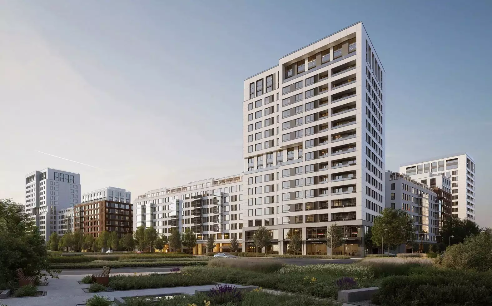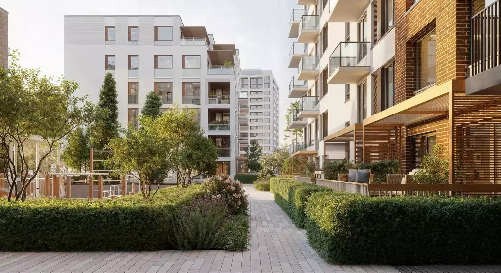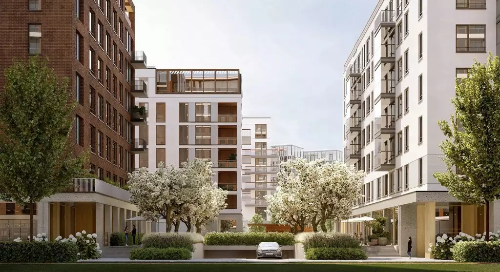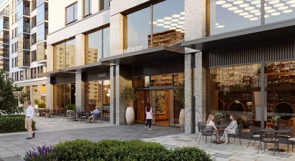 Квартал разделен на шесть тематических зон: городскую, природную, спортивную, семейную, культурную и рекреационную. Каждая из них создана с учетом потребностей жителей и предлагает разнообразные сценарии для отдыха, общения и занятий спортом. Связующим элементом станет кольцевой бульвар, ведущий к парку и обрамленный водными аллеями. Пространства комплекса спроектированы таким образом, чтобы пешеходы чувствовали себя комфортно. Закрытые дворы на стилобатах и отсутствие транзитного движения транспорта делает территорию уютной и безопасной. Озеленение занимает значительную часть дворов, в оформлении ландшафта используются только натуральные материалы. Для активного отдыха предусмотрены спортивные площадки и тренажеры, а для детей — игровые зоны с безопасным покрытием. Взрослые смогут отдохнуть в специально оборудованных лаунж-зонах. На крышах зданий появятся террасы с зелеными насаждениями, которые подойдут как для работы, так и для спокойного отдыха. Продуманная система освещения подчеркнет красоту архитектуры, ландшафта и арт-объектов, создавая уютную атмосферу в любое время суток. Дополнительно обустроены пространства для проведения мероприятий, летний кинотеатр и открытый лекторий. В состав встроенной инфраструктуры квартала войдут: