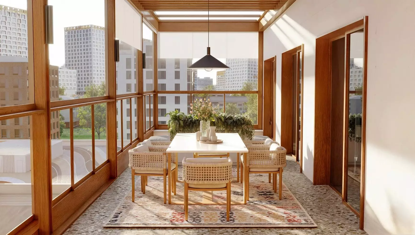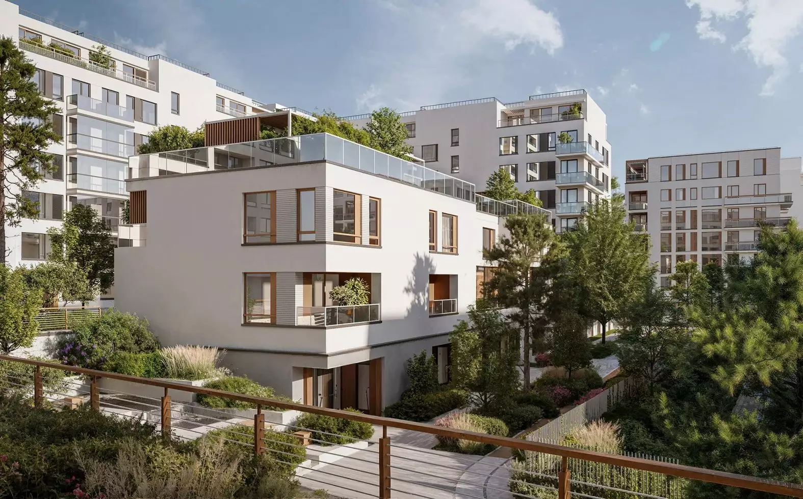 Покупателям предлагается 67 вариантов планировок, включая двухуровневые квартиры, просторные студии, лоты с отдельными входами и палисадниками, а также эксклюзивные таунхаусы и урбан-виллы на 50-60 квартир с общим лобби. Высокие потолки, достигающие 3,3 м, и панорамные окна обеспечивают наполнение пространств естественным светом. В квартирах предусмотрены просторные угловые лоджии, балконы и террасы. Владельцы верхних этажей урбан-вилл получат веранды с витражным остеклением, защищенные от осадков и ветра, позволяющие использовать их круглый год. Квартиры на первых этажах, выходящие на парк, дополнены палисадниками и отдельными входными группами с калитками. Представленные пятиуровневые таунхаусы с индивидуальными гаражами расположены в центре квартала. На их крышах организованы две террасы, которые можно использовать как летнюю столовую, игровую площадку или место для отдыха. Застройщик передает все лоты с предчистовой отделкой.