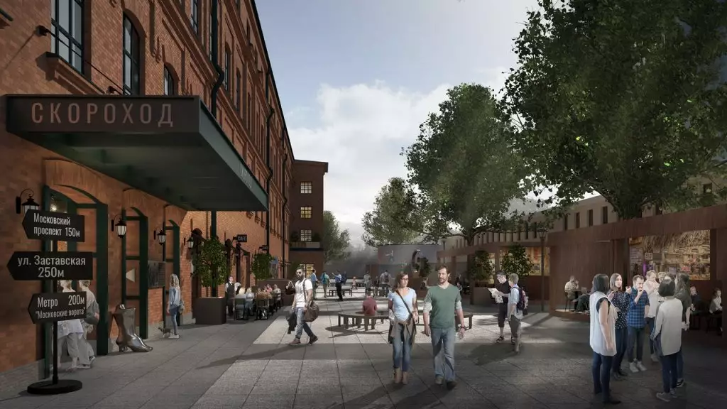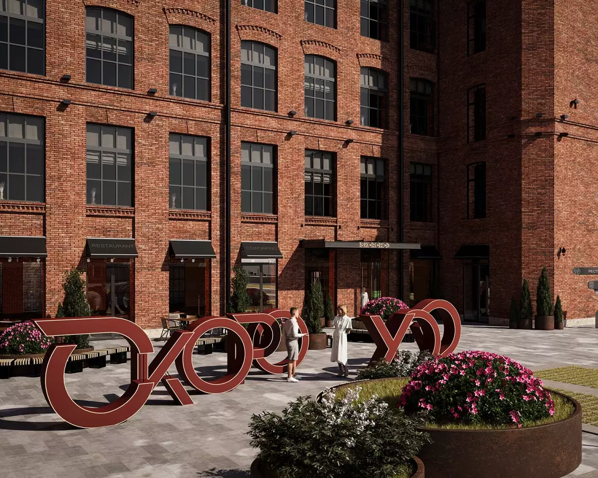 Комплекс зданий фабрики "Скороход" начали возводить в 1885 году по проекту А.И. Рейнбольдта. Расширение ансамбля в 1907 году провел архитектор Э.А. Густавсон. Фабрика-долгожитель работала по профилю до 2005 года, а в 2019 году территорию выкупила Охта Групп. Проект реконструкции разработала компания M.G. Private Reconstruction (Россия) совместно с архбюро "Проксима". Девелопер решил полностью сохранить внешний облик исторической застройки, превратив производственные корпуса в стильные малоэтажные здания и приспособив их для современного использования. Неоготический стиль фабрики с его отсылками к средневековым городским площадям возле соборов и ратуш, а также характерные детали фабричной архитектуры — чугунные и бетонные колонны, плоские и сводчатые перекрытия, большие окна с характерным остеклением — останутся нетронутым. Не изменится и общая планировка комплекса, которая оказалась крайне удачной. Обособленная территория бывшей фабрики уже содержит главную торговую улицу, центральную площадь, креативный кластер, зону стрид-фуда и т.д. Поэтому понадобилось лишь немного доработать логистику и функциональность внутри комплекса, чтобы создать комфортную среду для бизнеса, работы, шопинга, досуга, отдыха и жизни. Под крышей настоящего лофт-пространства нашлось место ритейлу, офисам, креативному кластеру, апартаментам. В здании бизнес-центра класса B+ выделены площади от 50 до 700 м² с высокими потолками и отделкой Shell&Core. В апарт-отеле помимо номеров предусмотрены коворкинг, ресторан авторской кухни, spa и другие услуги.