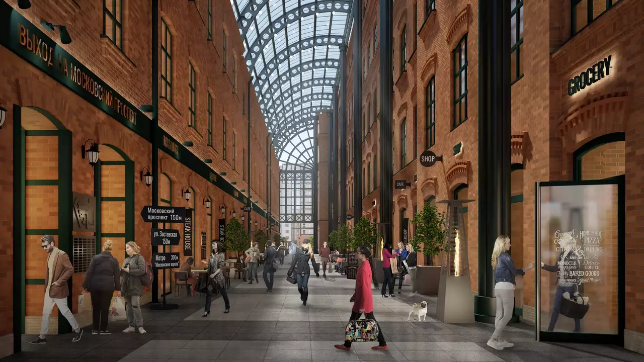 - - крытая пешеходная торговая улица от метро с магазинами, ресторанами и кафе;