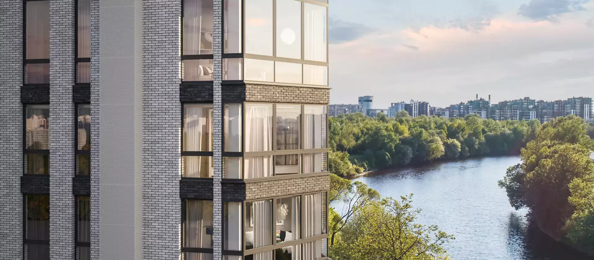 Покупателям недвижимости в апарт-комплексе предлагаются студийные и однокомнатные планировки площадью от 19 до 39 м² с потолками высотой 2,61 м и панорамными окнами. Часть апартаментов будет иметь прекрасные виды на зеленые берега реки Охта. Все номера застройщик передает с чистовой отделкой в светлых тонах. За доплату может быть выполнена меблировка.