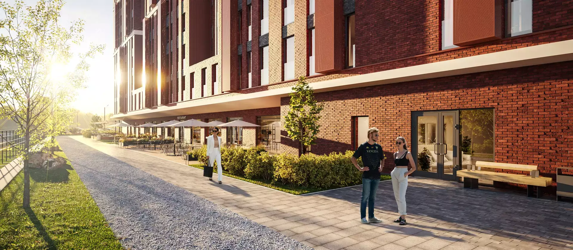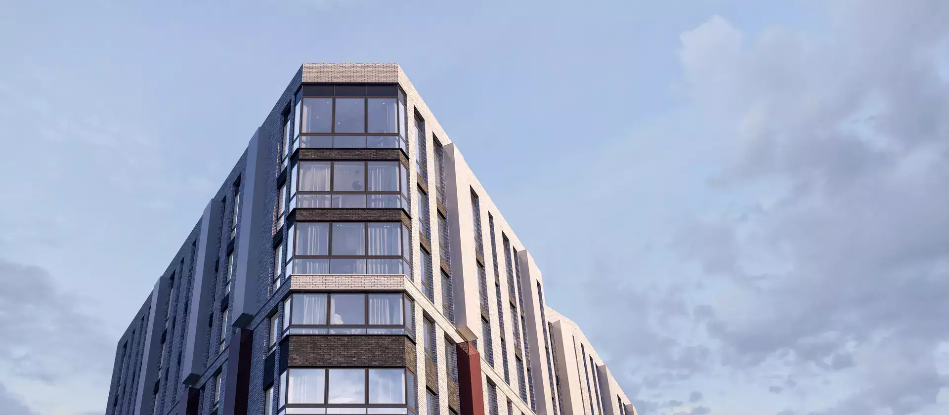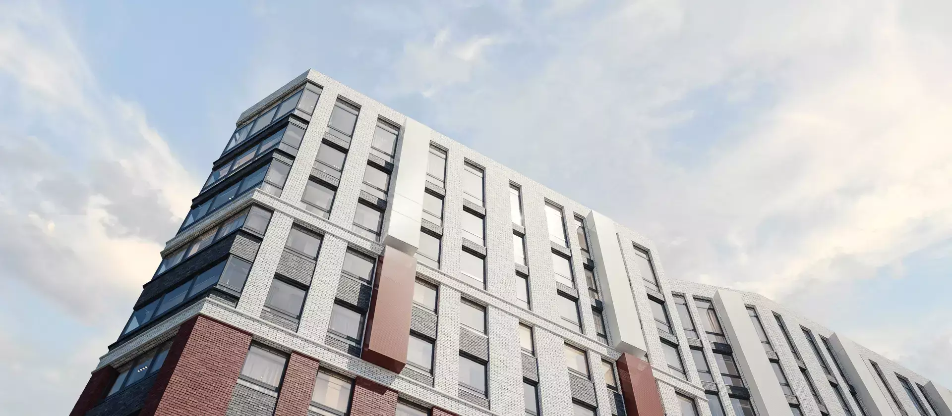 Застройщик возводит здание по монолитно-кирпичной технологии. Утепленные вентилируемые фасады с панорамным остеклением окон облицуют красным и белым отделочным кирпичом. Дом оборудуют современной инженерией, в том числе системами пожарной безопасности и видеонаблюдения 24/7. Доступ в апарт-отель сделают возможным только при наличии ключ-карты. Для доставки жителей на этажи и в паркинг установят малошумные лифты.