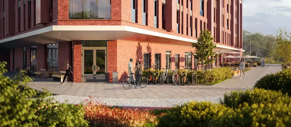 Открытая придомовая территория новостройки будет благоустроена и озеленена. Рядом со зданием выделят девять наземных парковочных мест для автомобилей. Резиденты апарт-отеля смогут пользоваться его внутренней инфраструктурой, в рамках которой доступны: