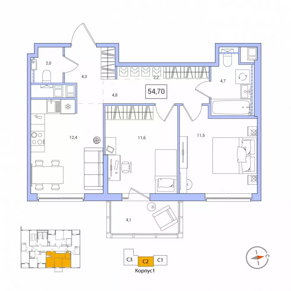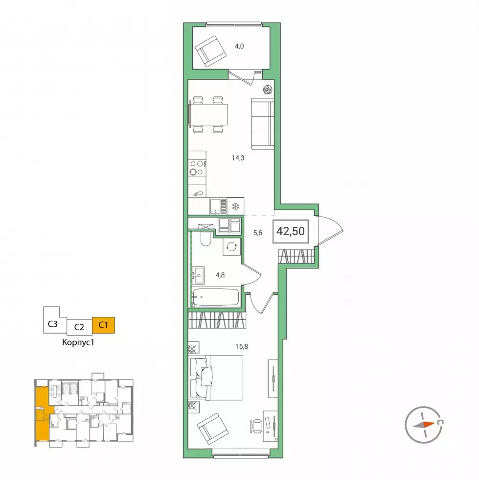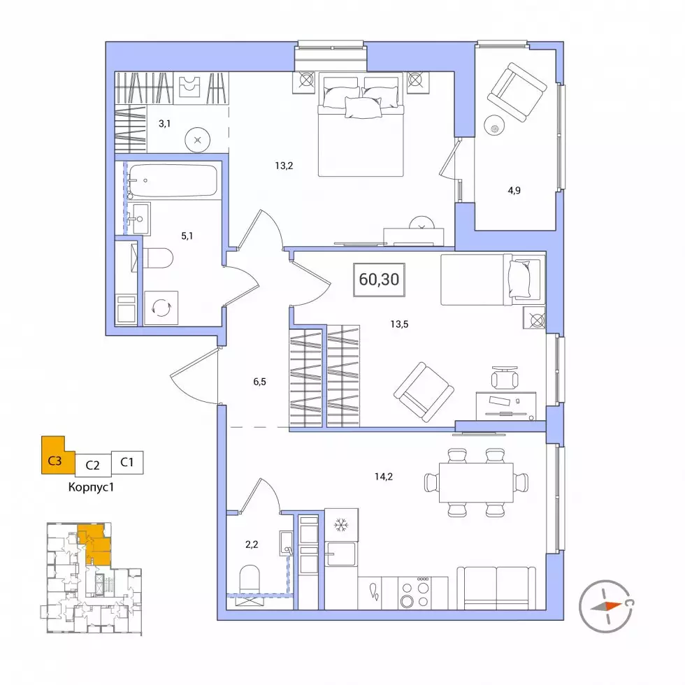Покупателям жилья предлагаются классические и европланировки площадью от 34,4 до 63,8 м² с одной-двумя комнатами, в том числе студии, с потолками высотой от 2,74 до 3 м (в зависимости от этажа) и остекленными балконами. Часть лотов будет иметь увеличенную кухню. Застройщик передает все квартиры с чистовой отделкой в одном из двух вариантов на выбор: "Скандинавия" или "Дерево".