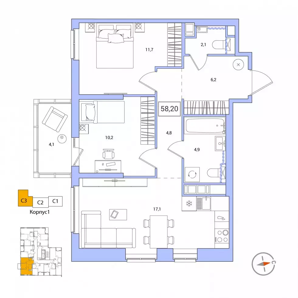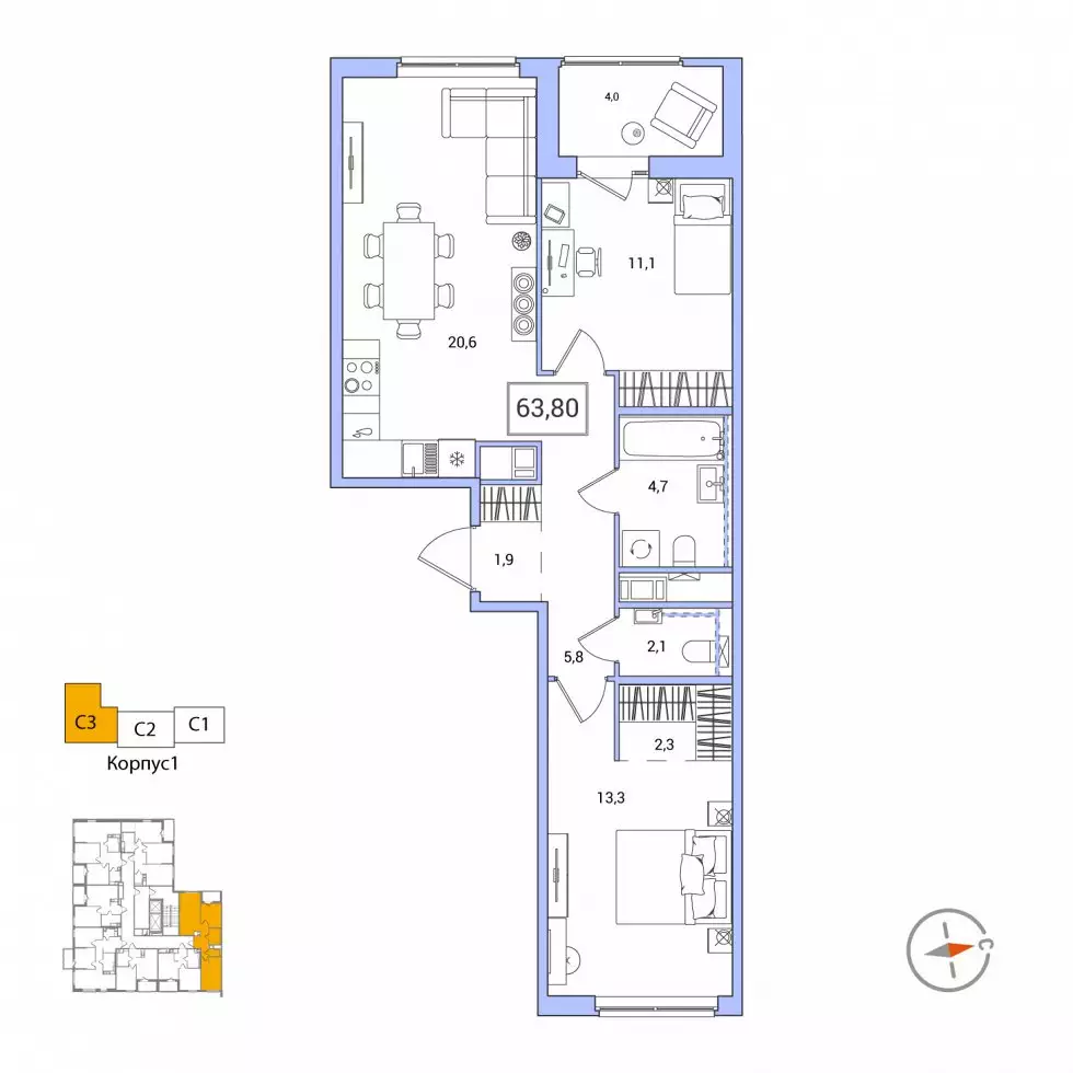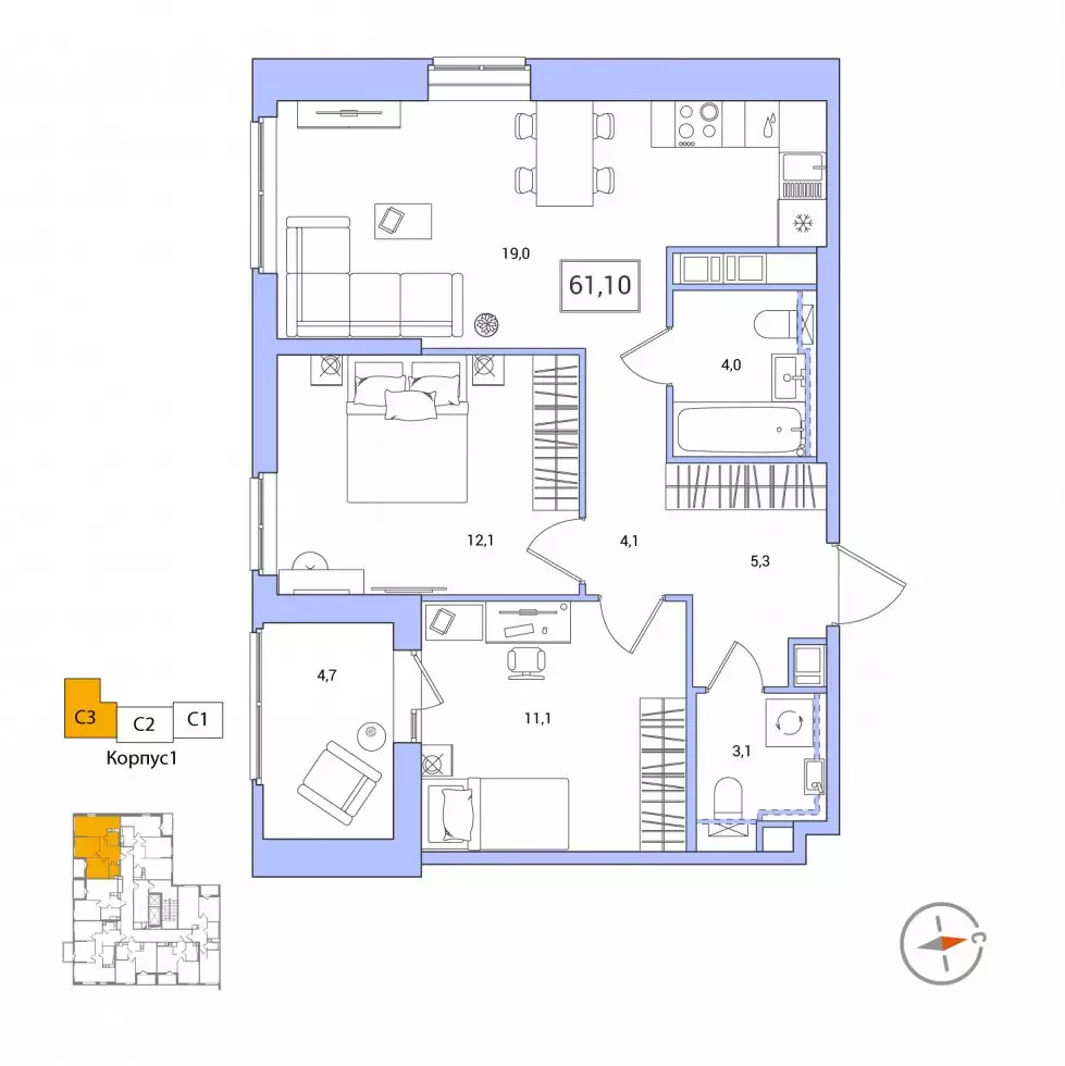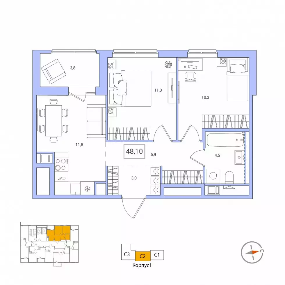 Покупателям жилья предлагаются классические и европланировки площадью от 34,4 до 63,8 м² с одной-двумя комнатами, в том числе студии, с потолками высотой от 2,74 до 3 м (в зависимости от этажа) и остекленными балконами. Часть лотов будет иметь увеличенную кухню. Застройщик передает все квартиры с чистовой отделкой в одном из двух вариантов на выбор: "Скандинавия" или "Дерево".